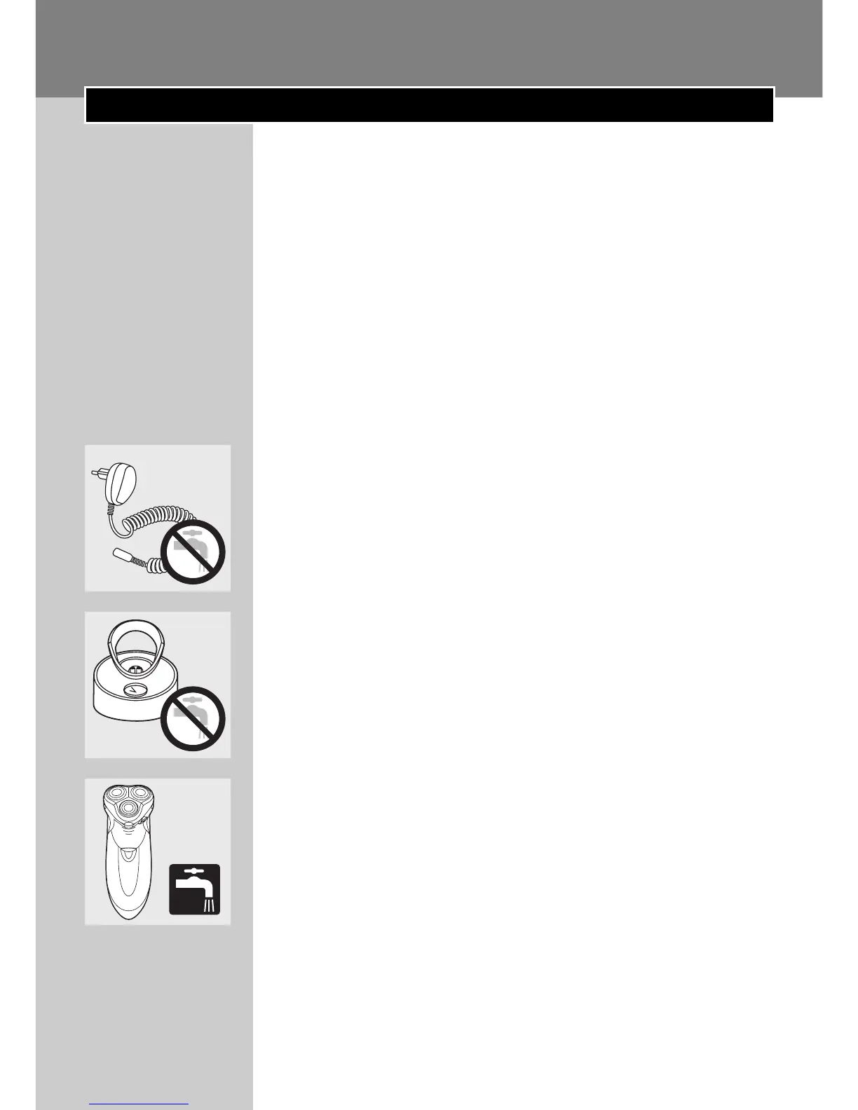 ◗ Never immerse the charging stand in water