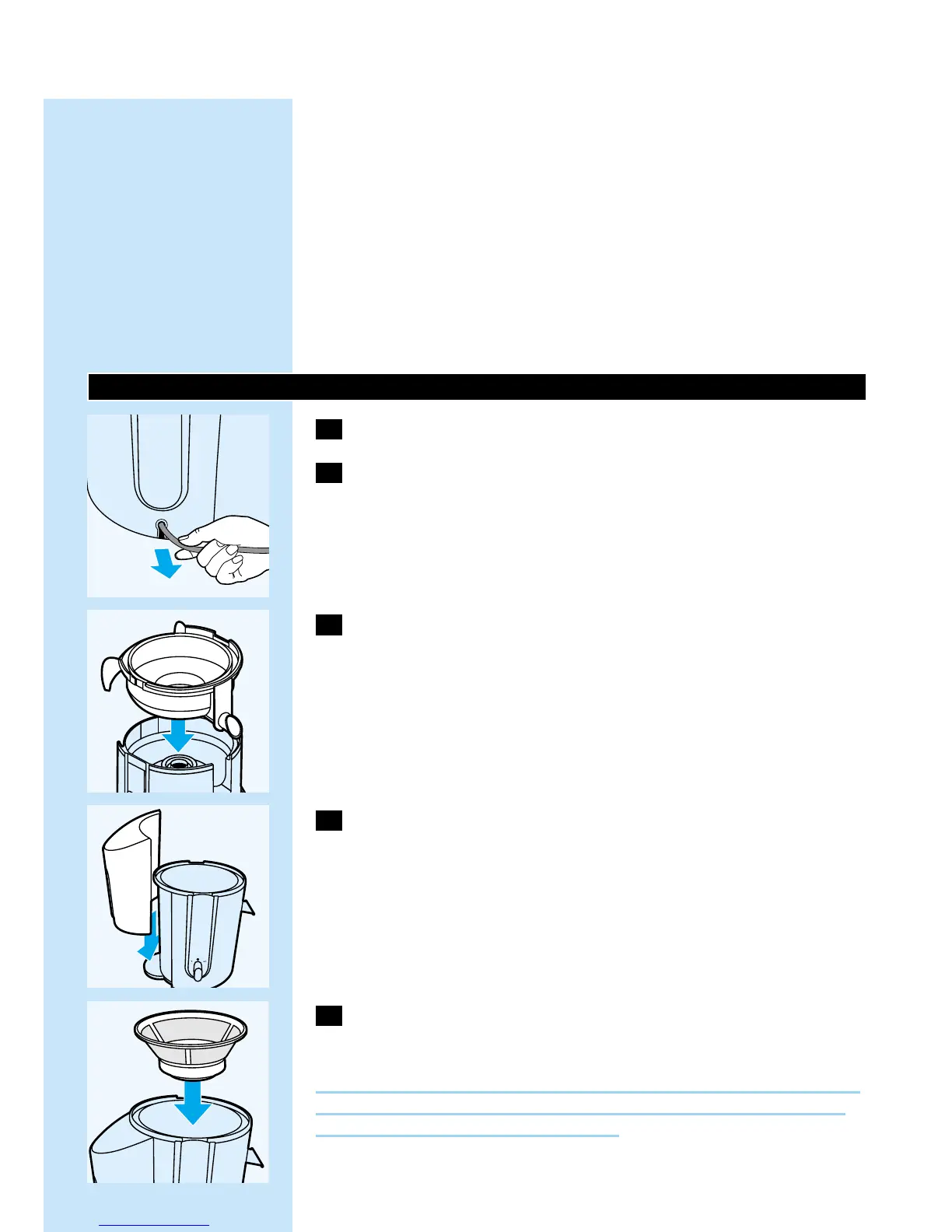◗ Nedotýkejte se malých, ostrých břitů na dně filtru.