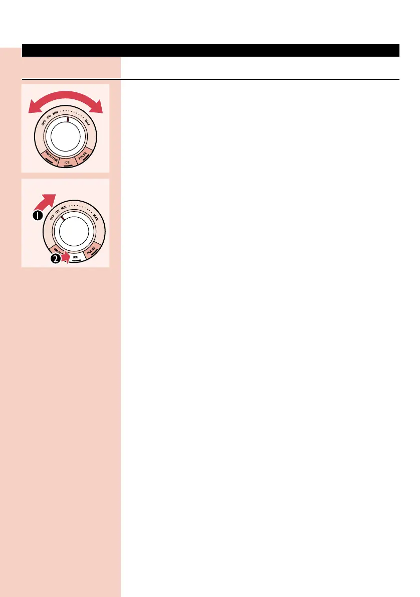 ingin menghancurkan es sampai lembut, putar kenop ke kecepatan