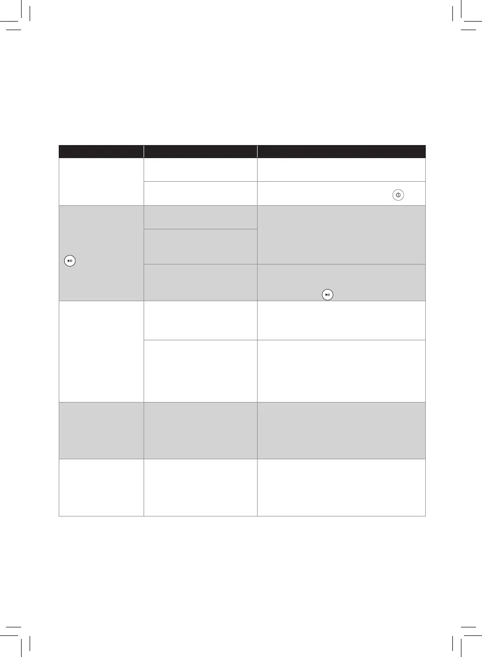 Problem Cause Possible solution