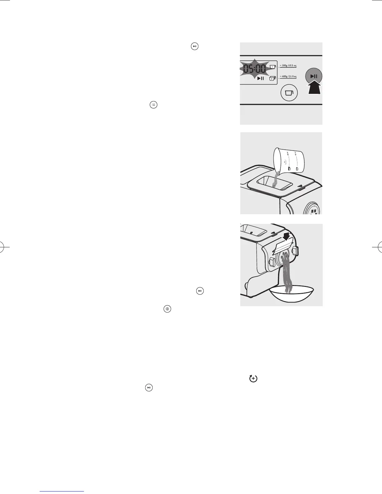 • Si les quantités de liquide et de farine ne sont pas correctes, l'extrusion échouera.