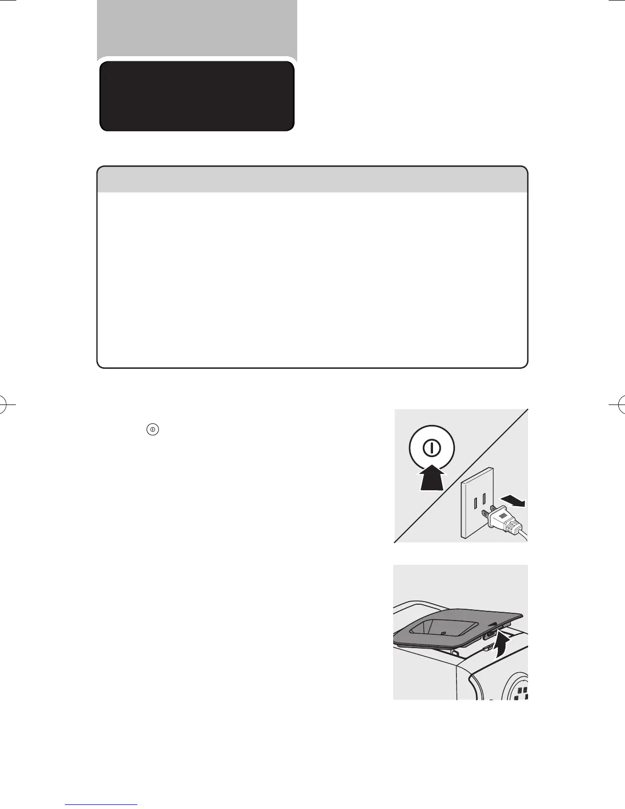 • Coupez l'alimentation et débranchez le cordon d'alimentation avant de nettoyer