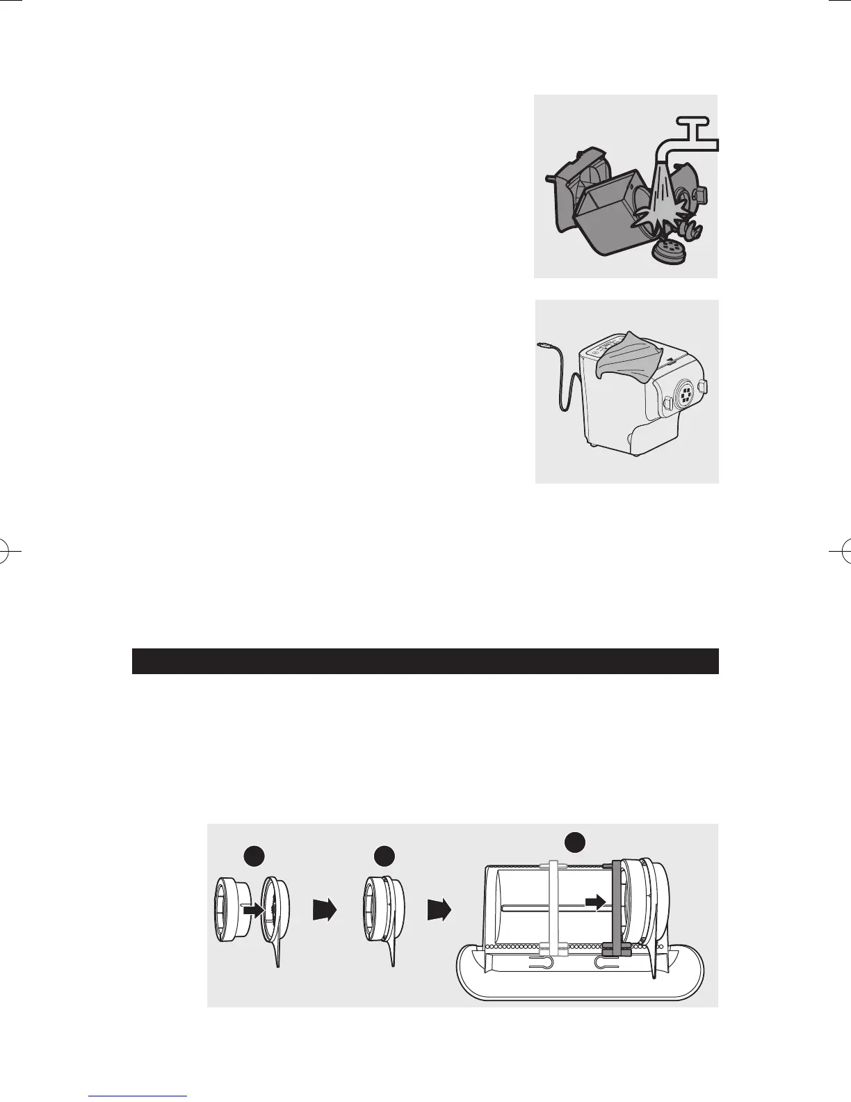 séché entièrement à l'air avant de les ranger. Assemblez la machine à pâtes pour la