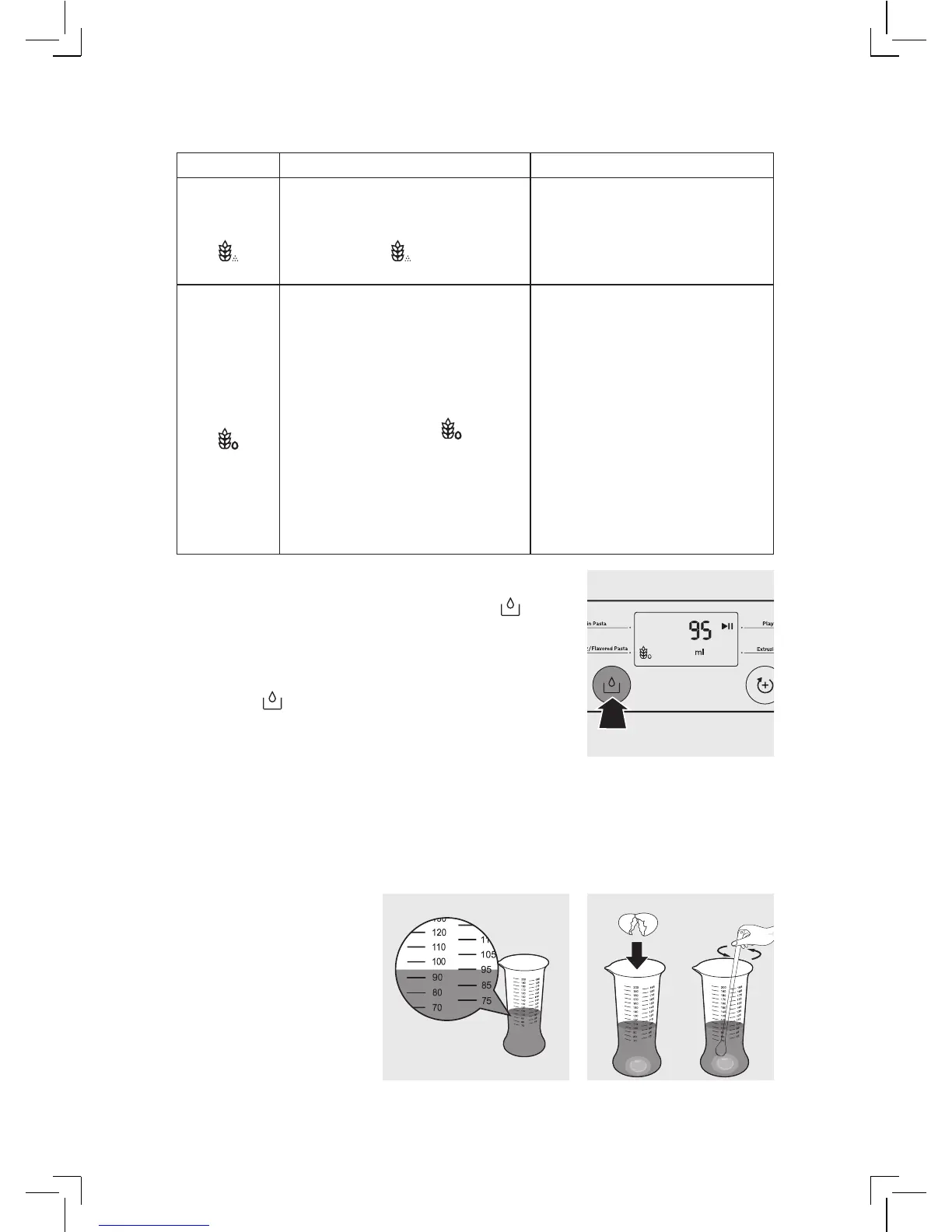 仅当显示屏上确认面粉重量后才能按液量计算