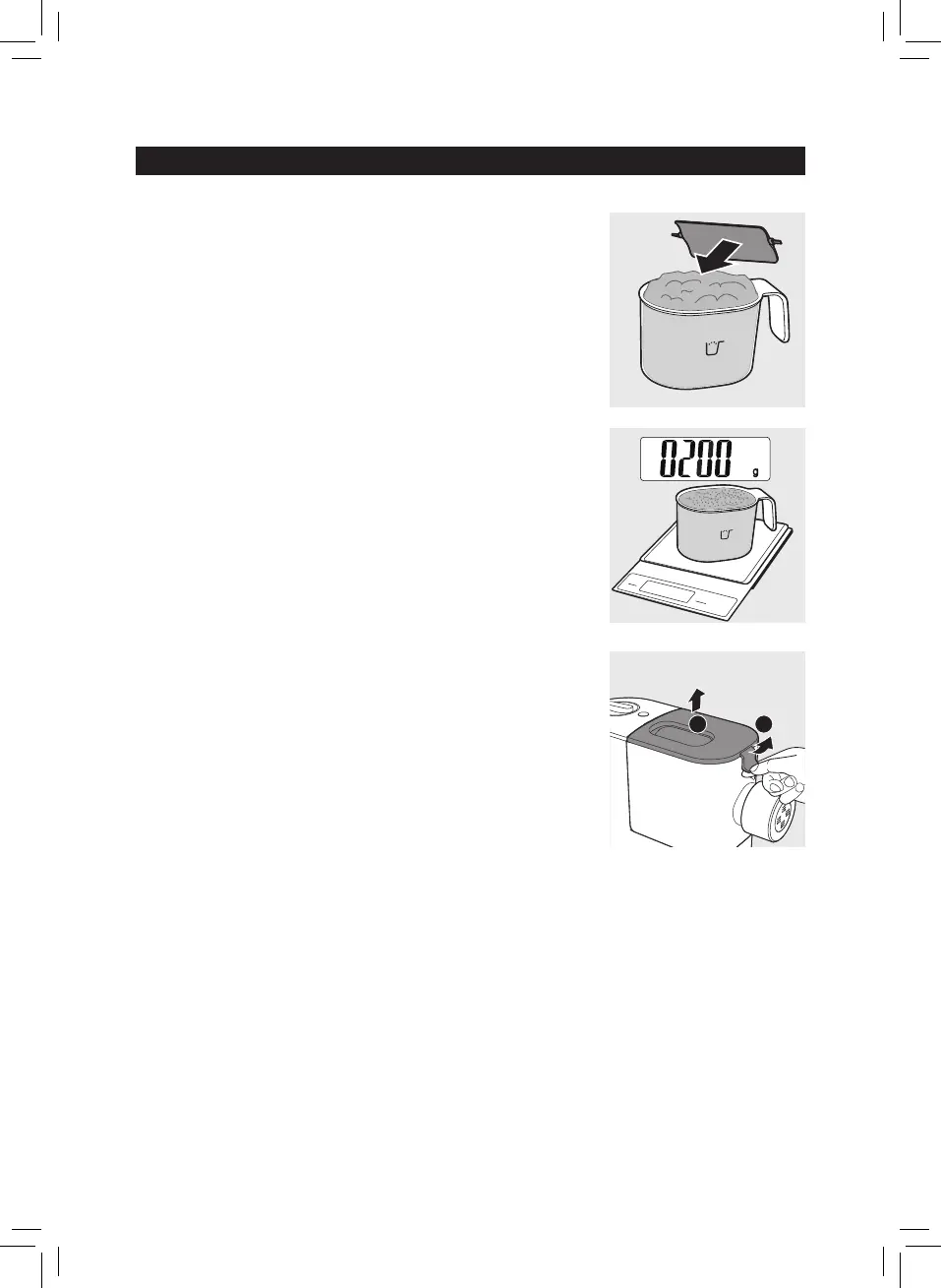 1 Scoop one full cup of our using the our cup.