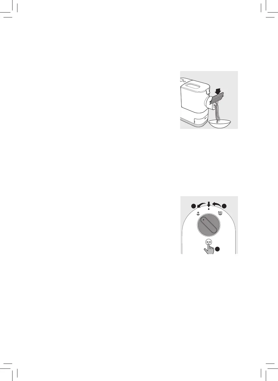 segundos. Coloque un recipiente justo bajo la salida. Corte la pasta del largo que