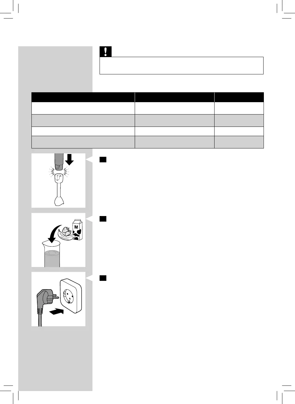 1 Attach the blender bar to the motor unit (“click”).