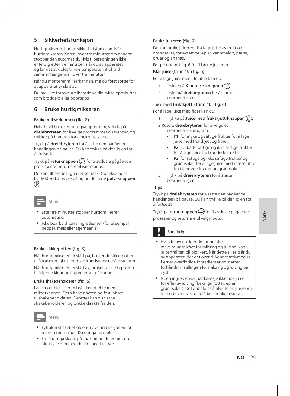 Hurtigmikseren har en sikkerhetsfunksjon. Når