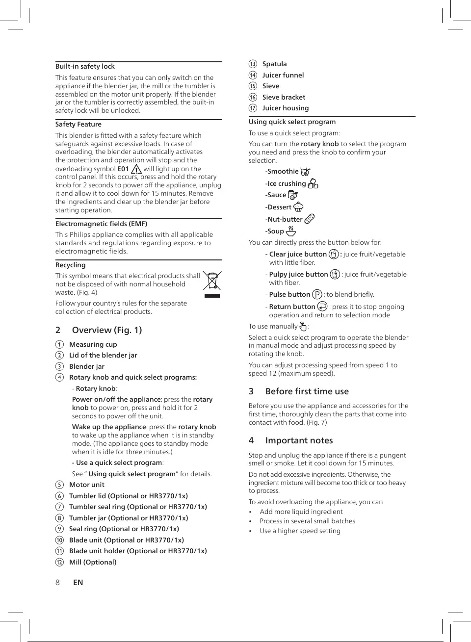 overloading, the blender automatically activates