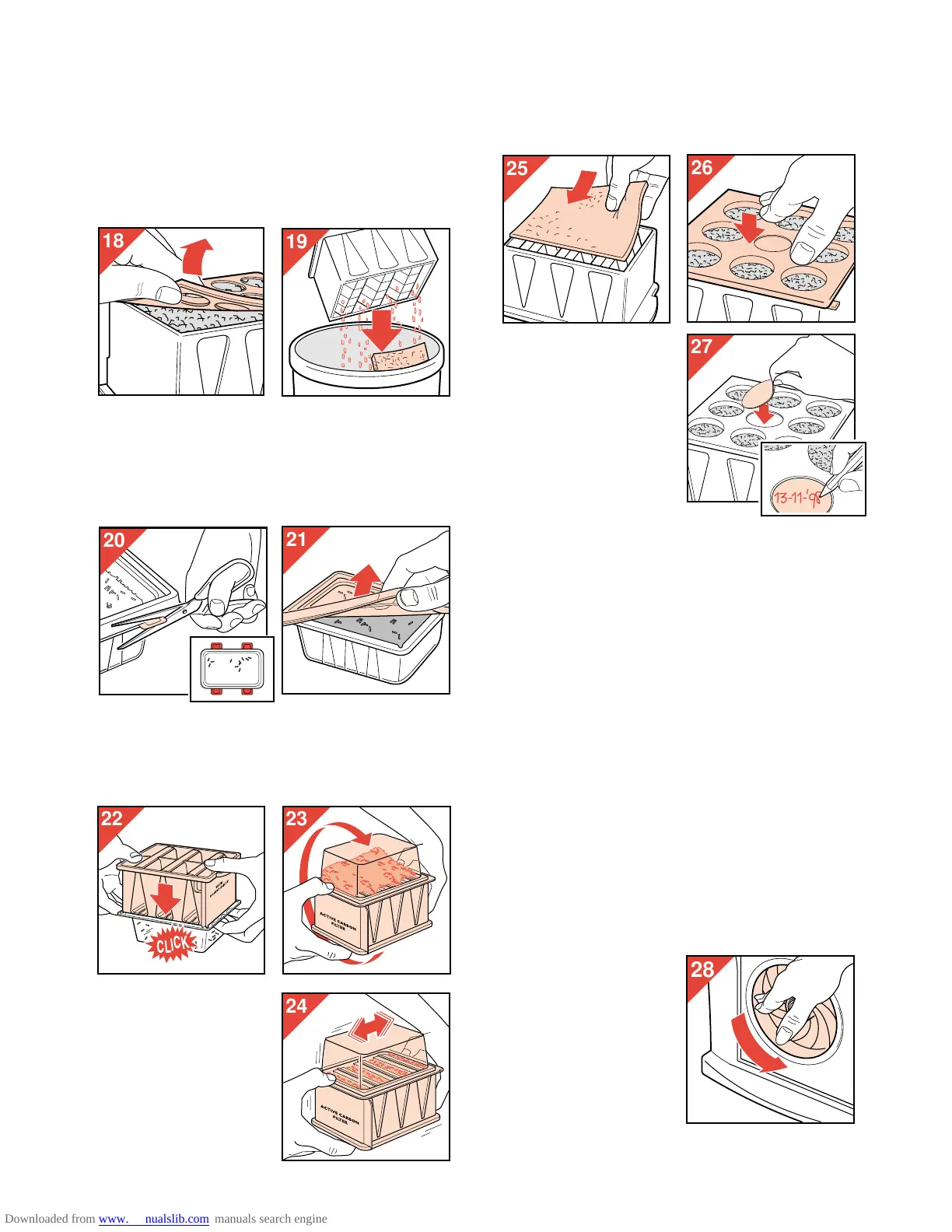 (fig. 23). Scuotete i granuli nel filtro e controllate