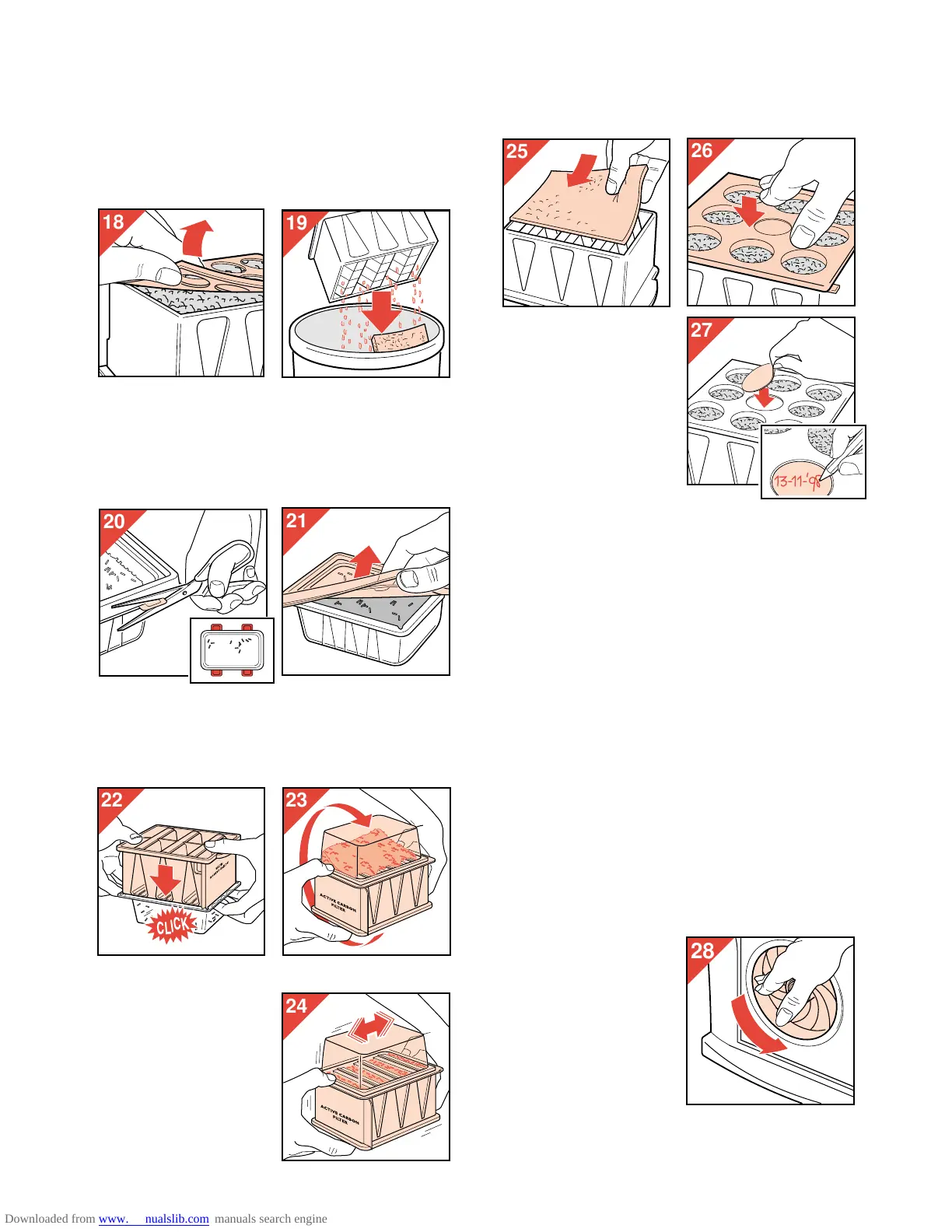 - Tag forsigtigt låget af kulfilteret (fig. 18).
