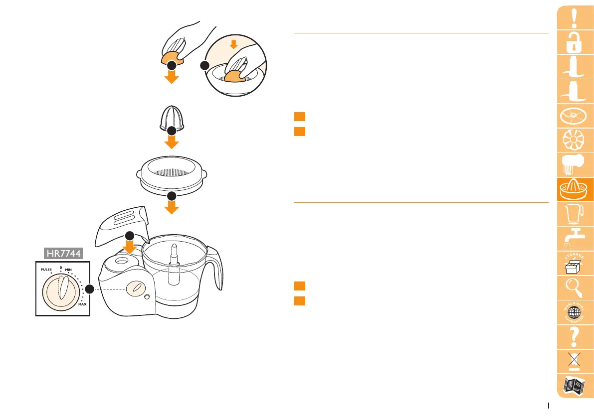 snart du tænder for apparatet og presser citrusfrugten ned over