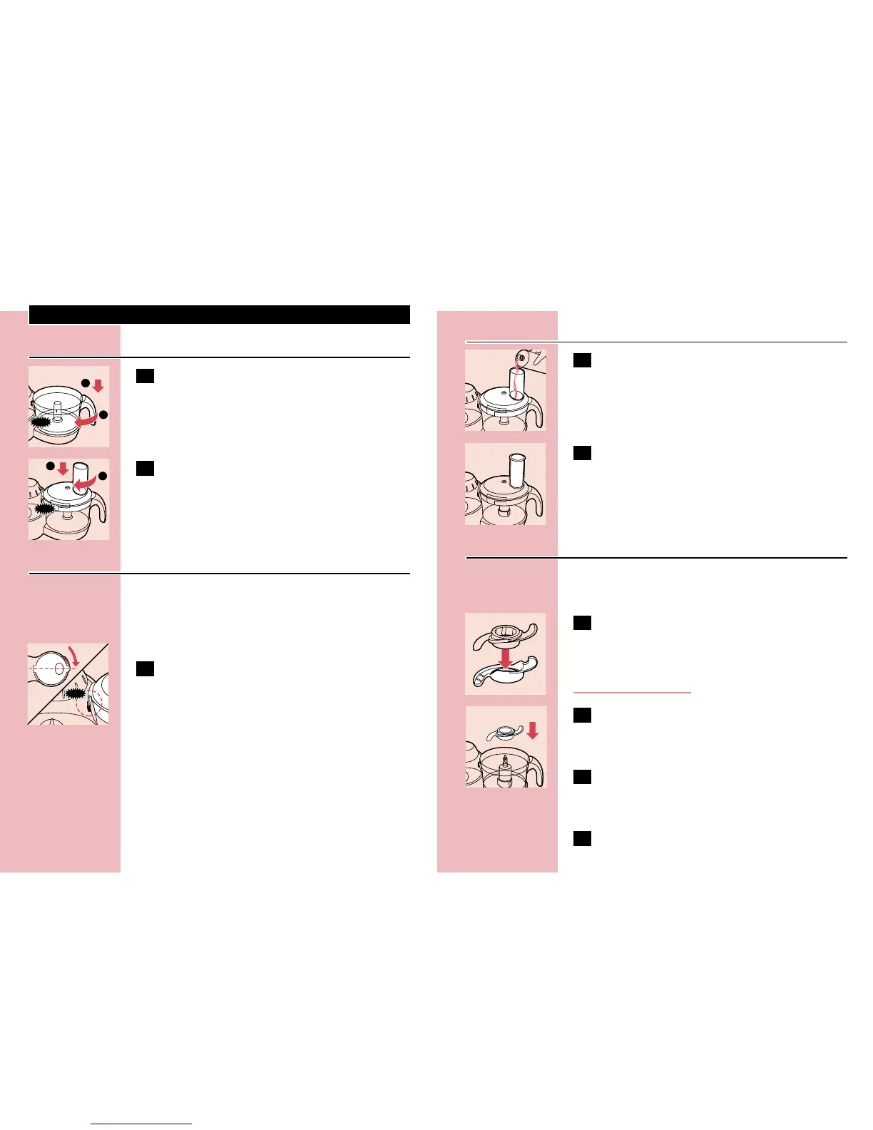 1 Mount the bowl on the food processor by