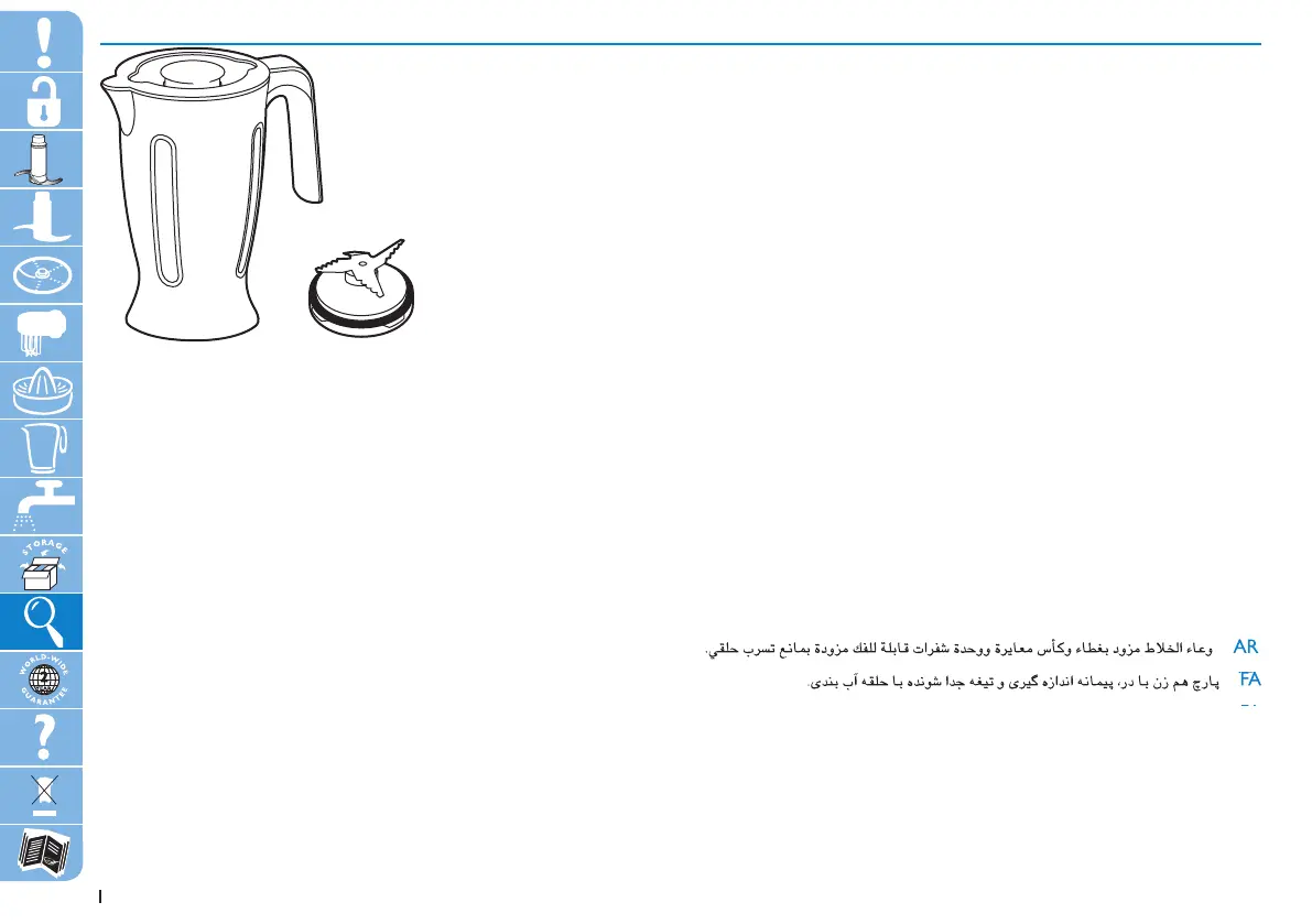 EN Blender jar with lid, measuring cup and detachable blade unit with