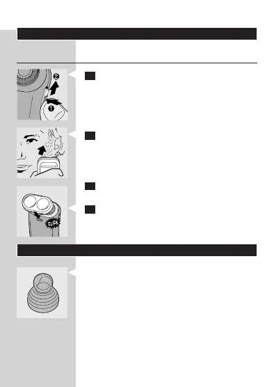 2將電鬍刀刀頭在皮膚上快速移動,請同時用