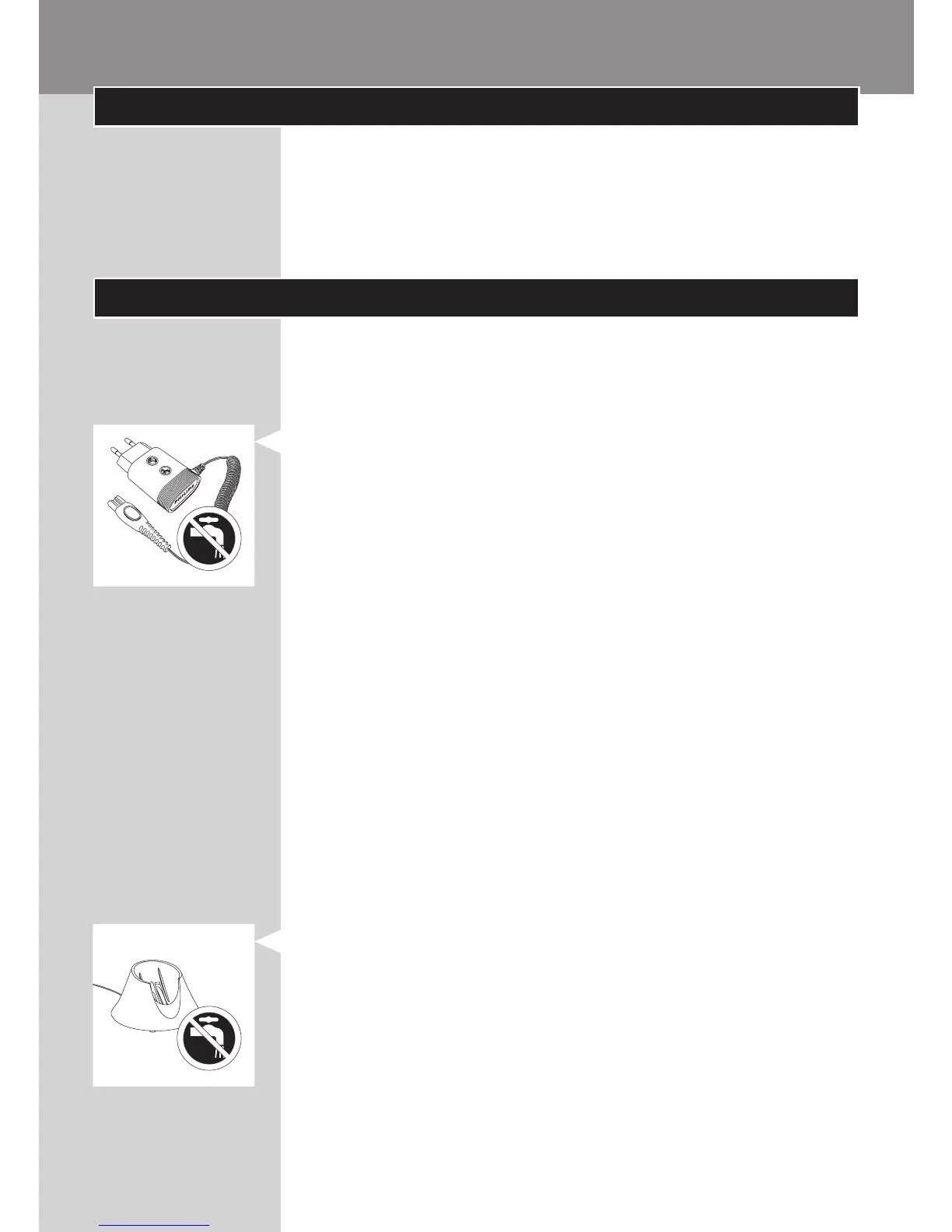Never immerse the charger in water nor rinse it