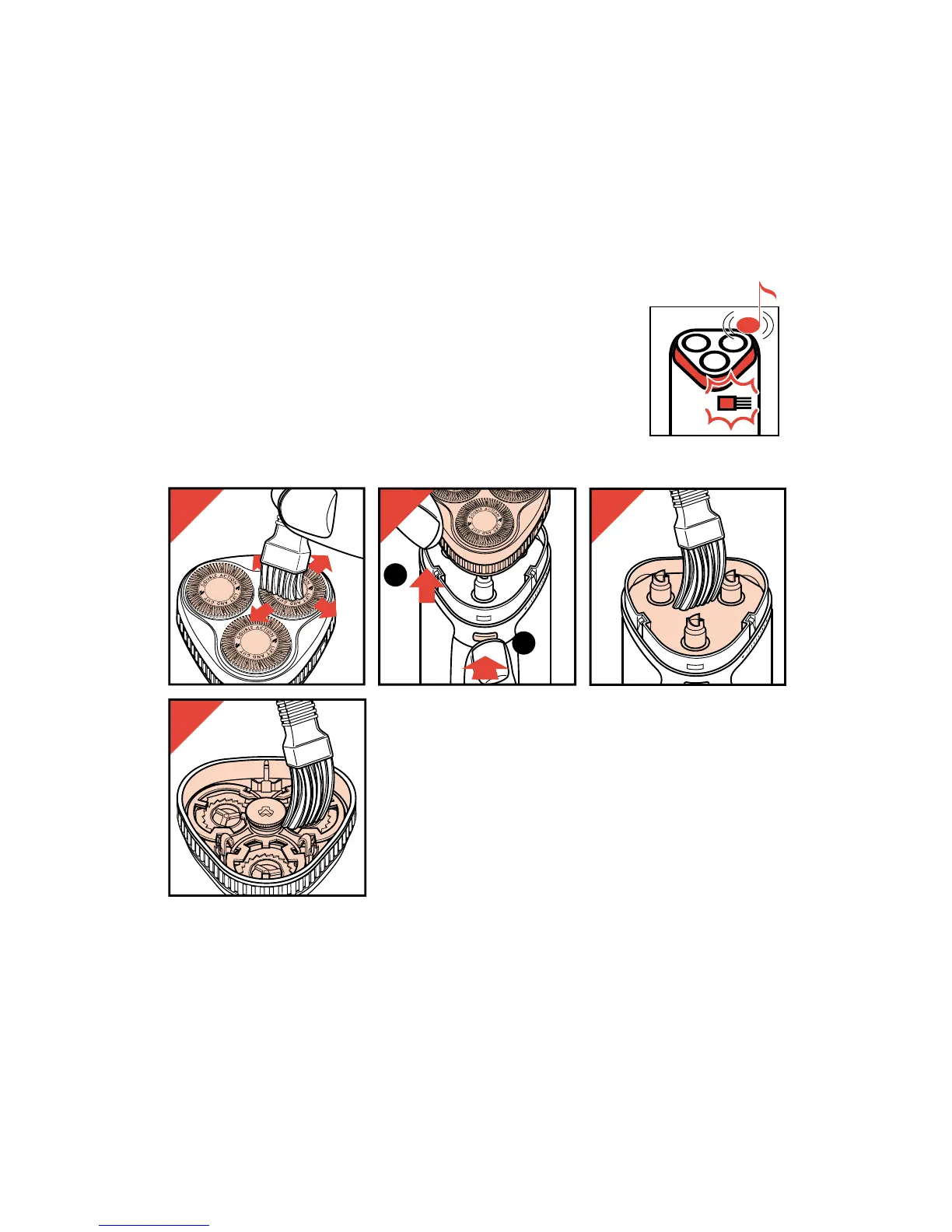 - (Fig. 14) Nettoyez les fentes des têtes de rasage