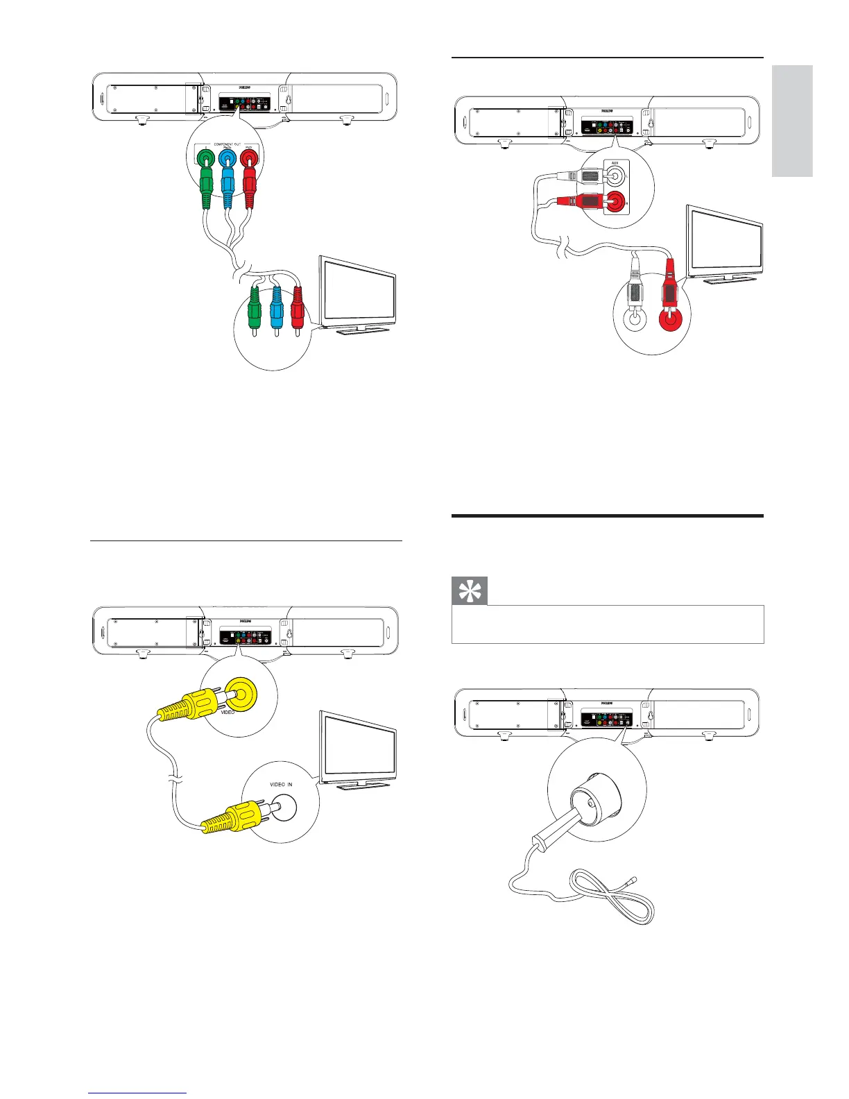 1 Connect component video cables (red/