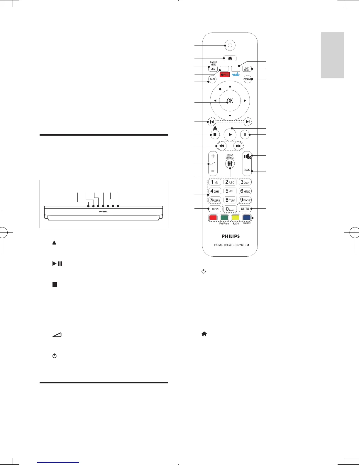 • Switch the home theater on or to