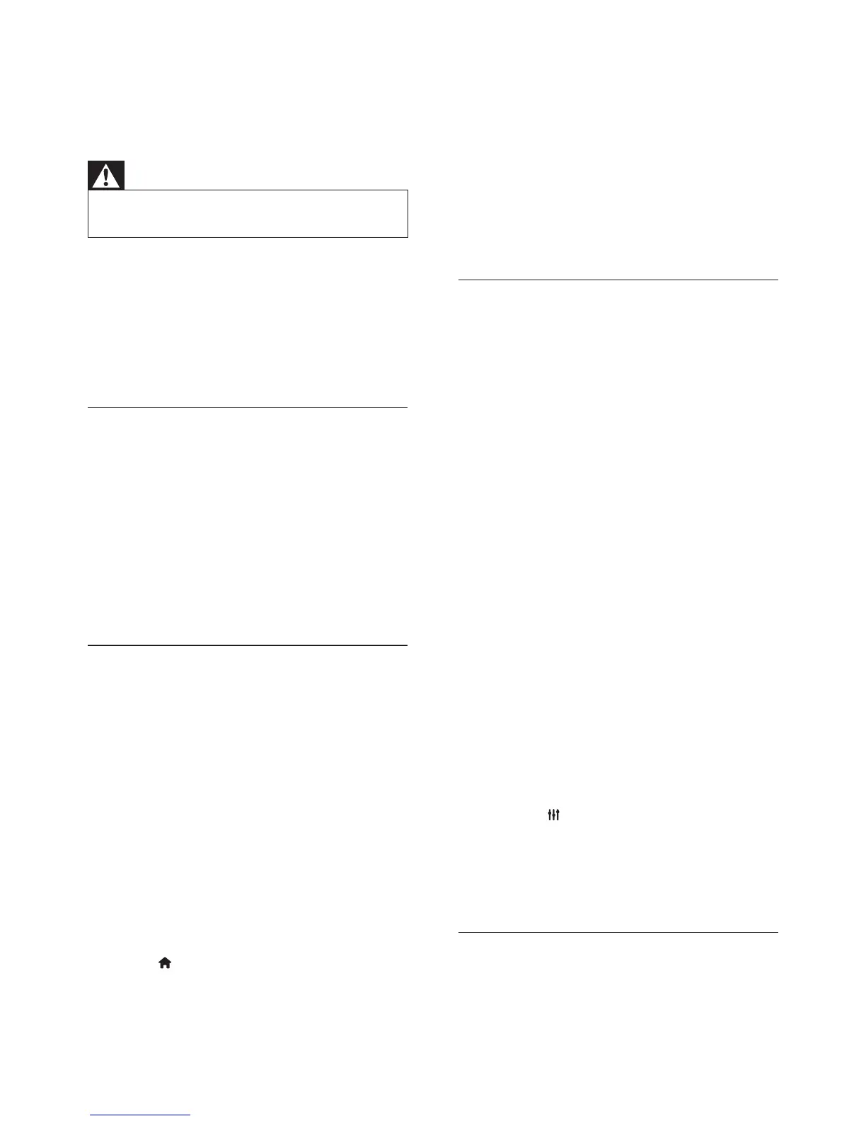• Risk of electric shock. Never remove the casing of the