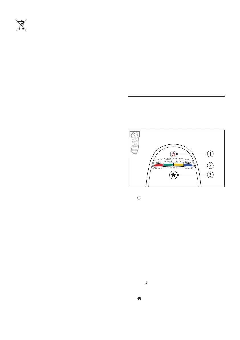• Switch the home theater on or to