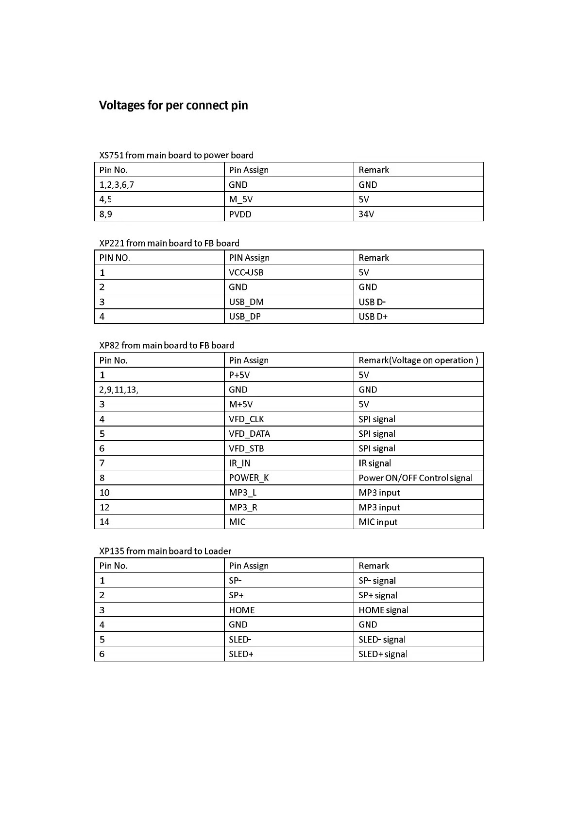 Philips HTD3510/12 - Connector Pinouts and Voltages; XS751 Connector Details; XP221 & XP82 Connector Details; Loader Connector Details