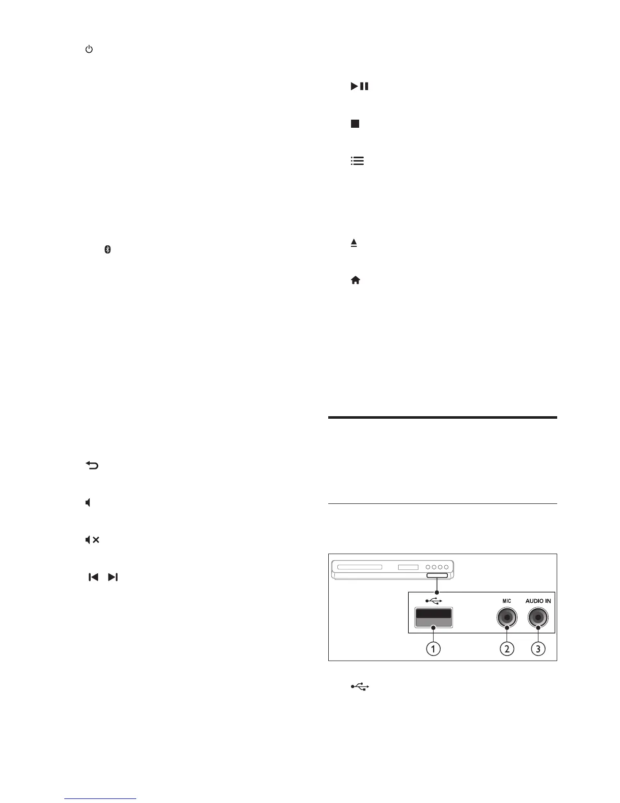 • Switch the home theater on or to
