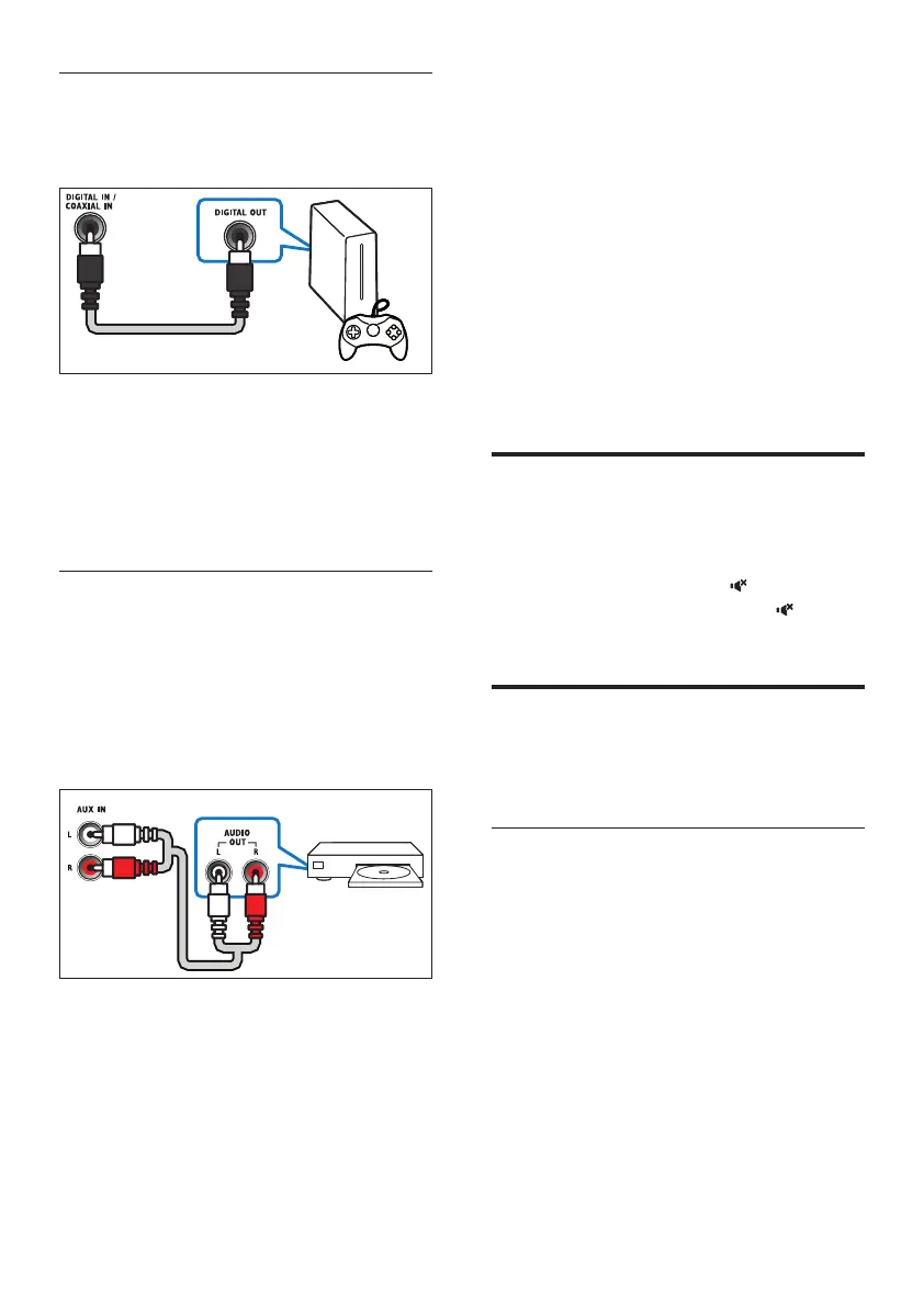 1 Using an analog cable, connect the AUX