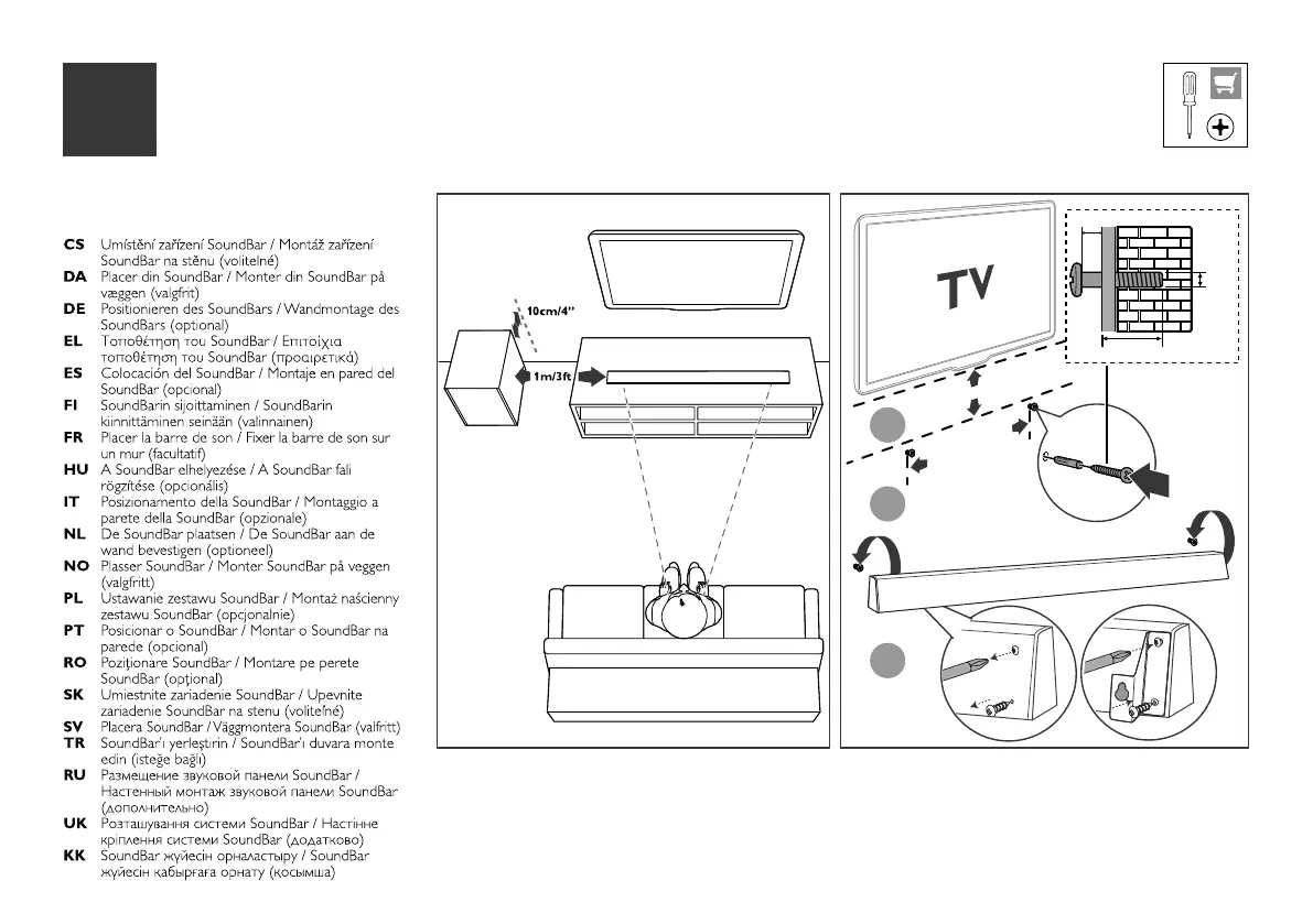 Position the SoundBar/ Wall mount the SoundBar