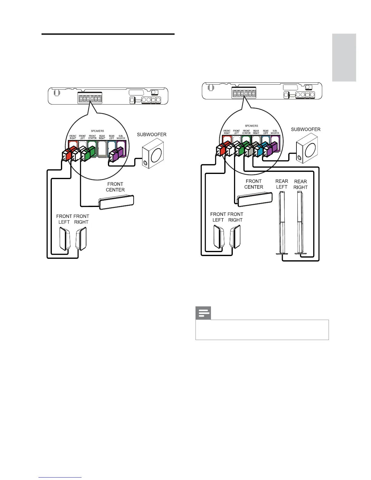 1 Connect the speakers and subwoofer to