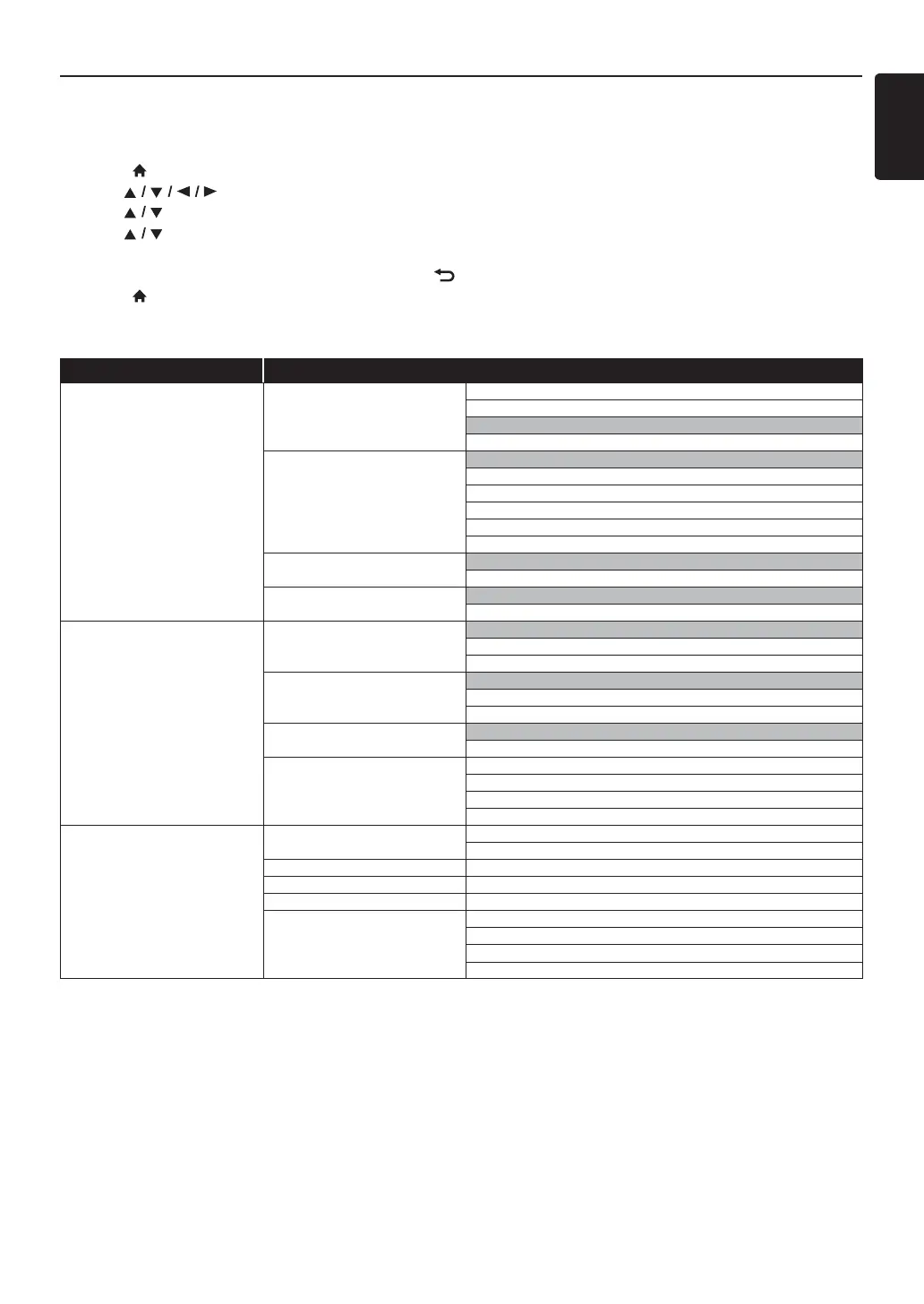 Refer to the following instructions to navigate through the setup menu.