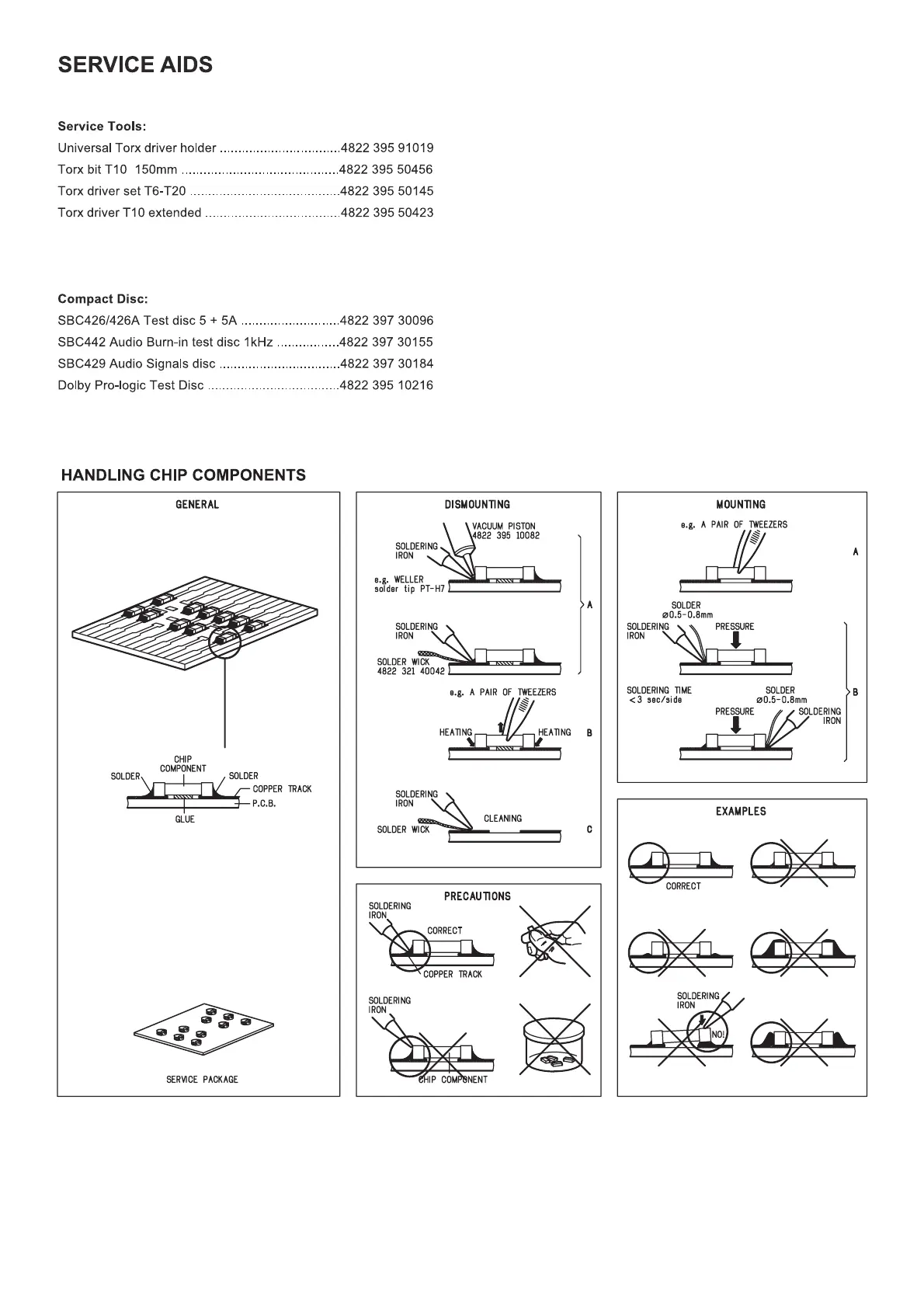 Philips HTS3365/55 - Service Aids; Service Tools; Compact Discs for Testing; Handling Chip Components