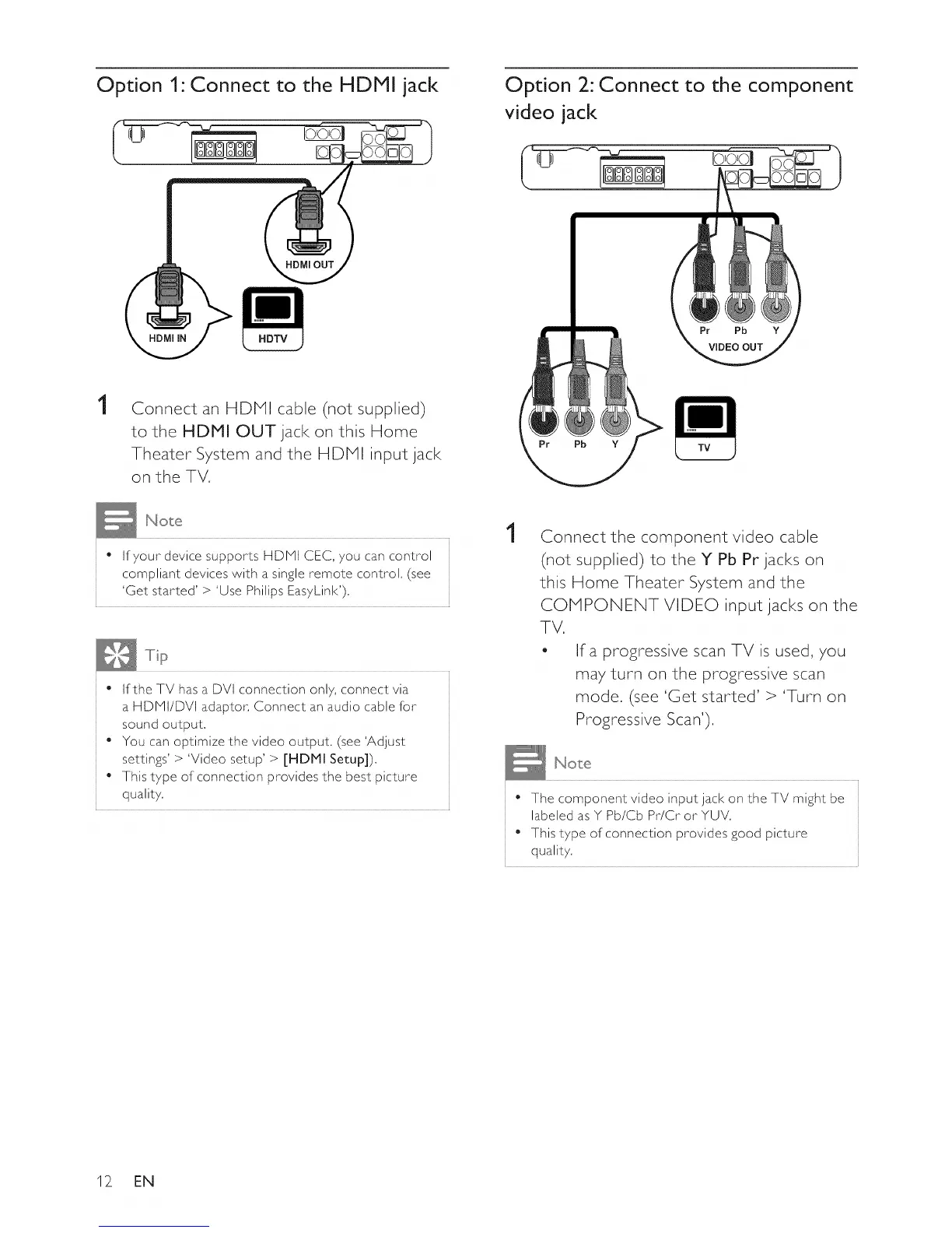 Option 1" Connect to the HDMI jack Option 2: Connect to the component