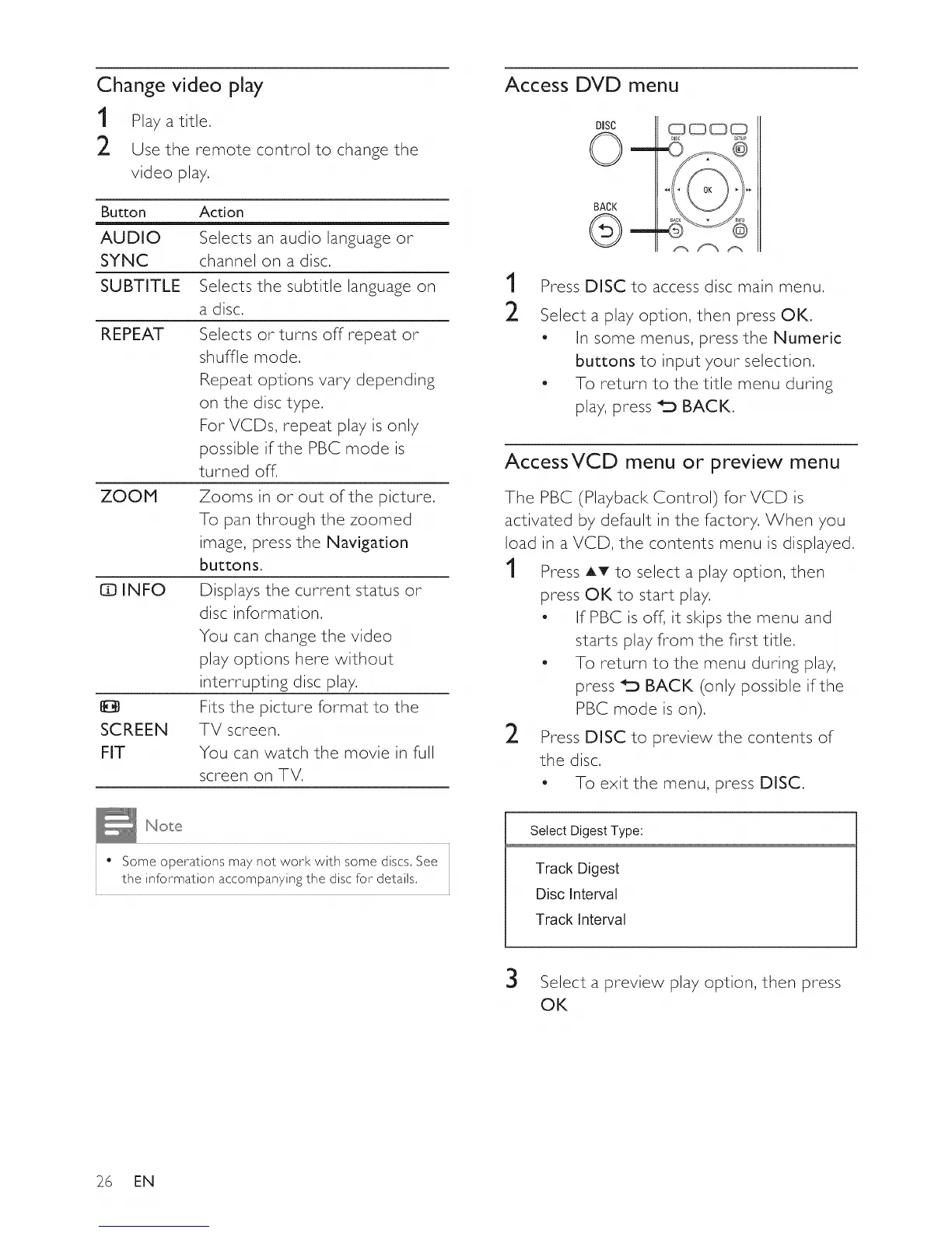 • Some operations may not work with some discs, See