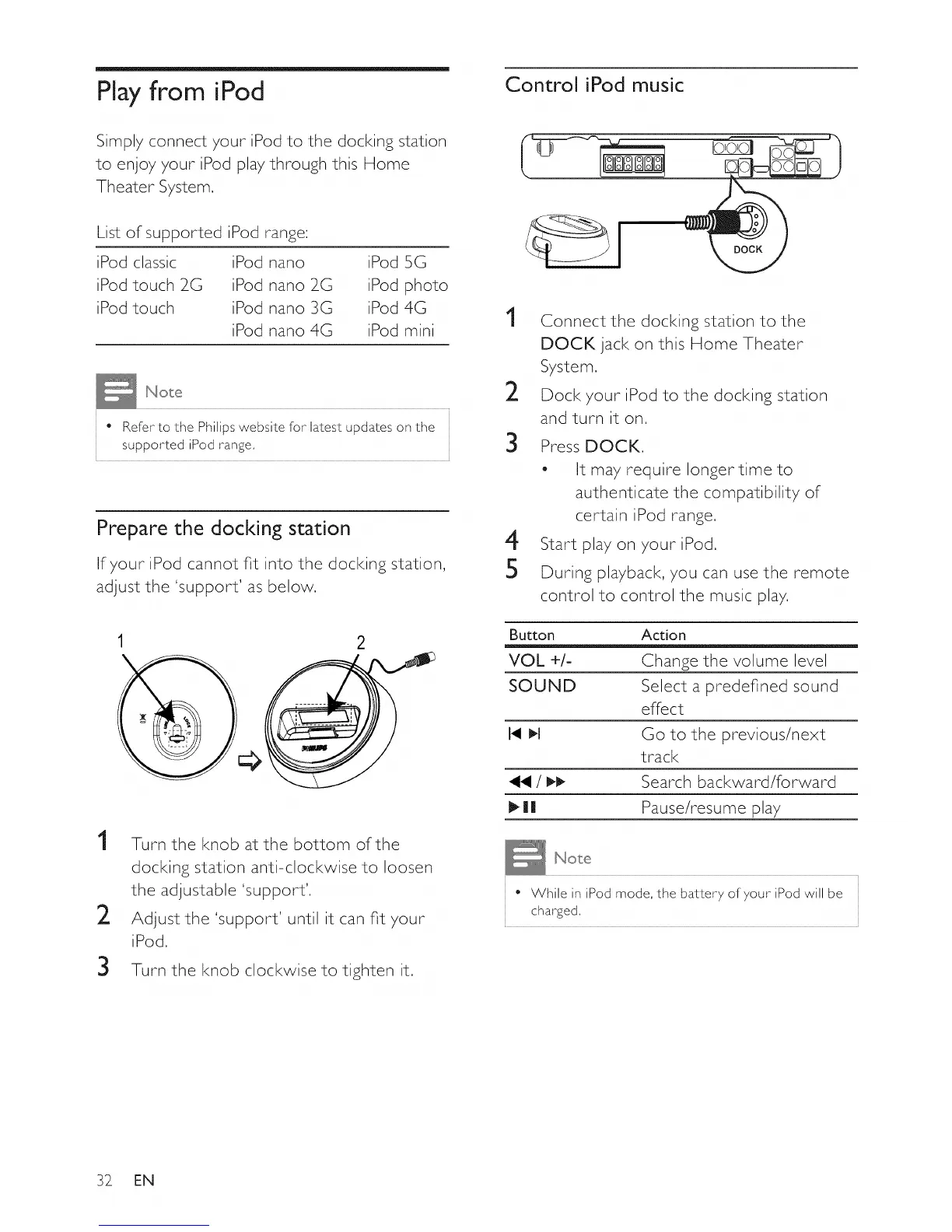 Dock your iPod to the docking station