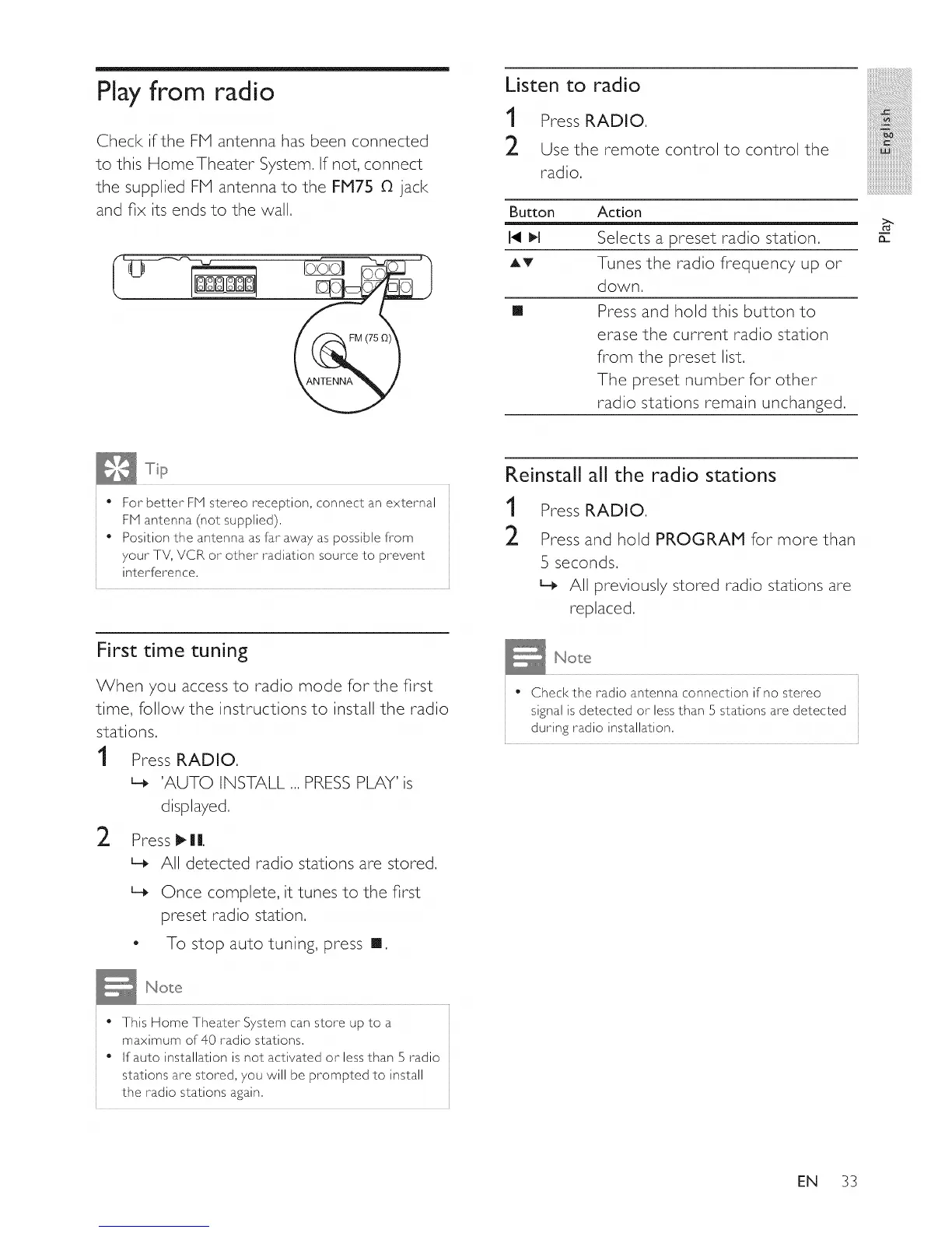 FM antenna (not supplied),