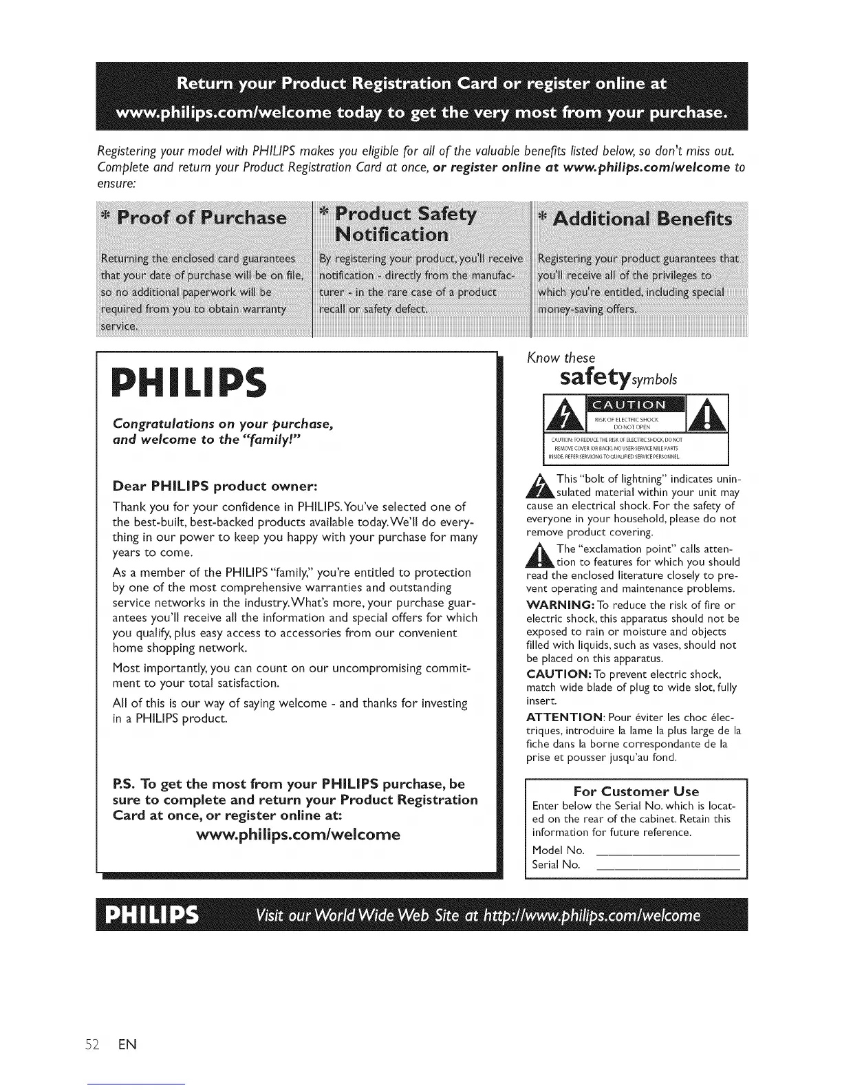 Complete and return your Product Registration Card at once, or register online at www.philips.comlwelcome to
