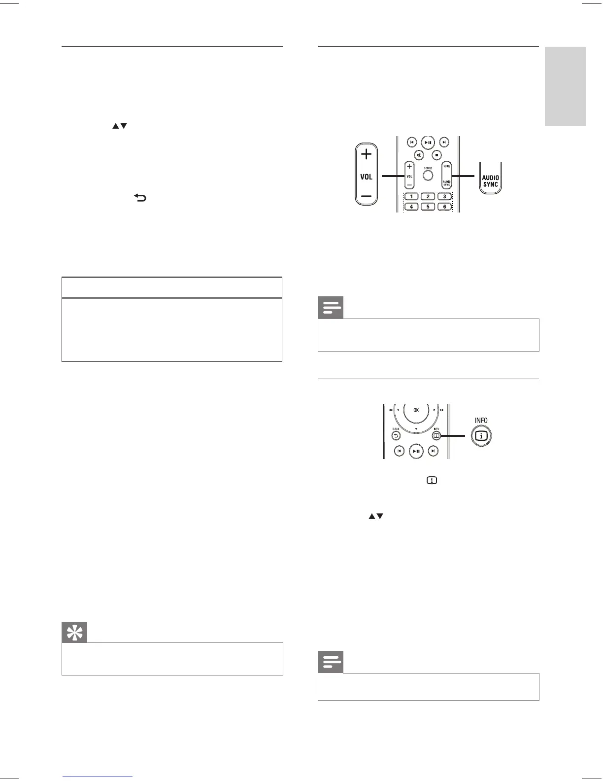 1 Press and hold AUDIO SYNC until