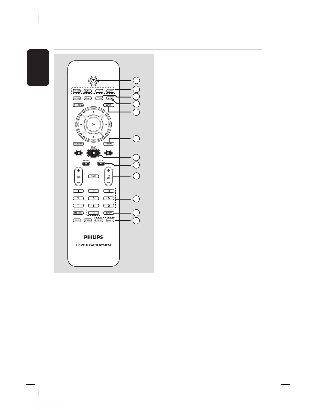 – Adjusts TV volume (Philips TV only.)