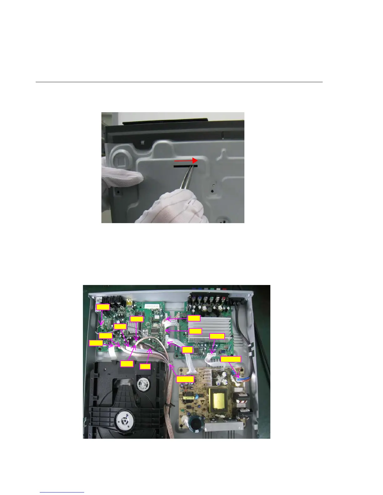2 snaps of front panel & 2 snaps of bottom cabinet , then gently pull the Panel out from the set. (Figure 4 - Figure 6)