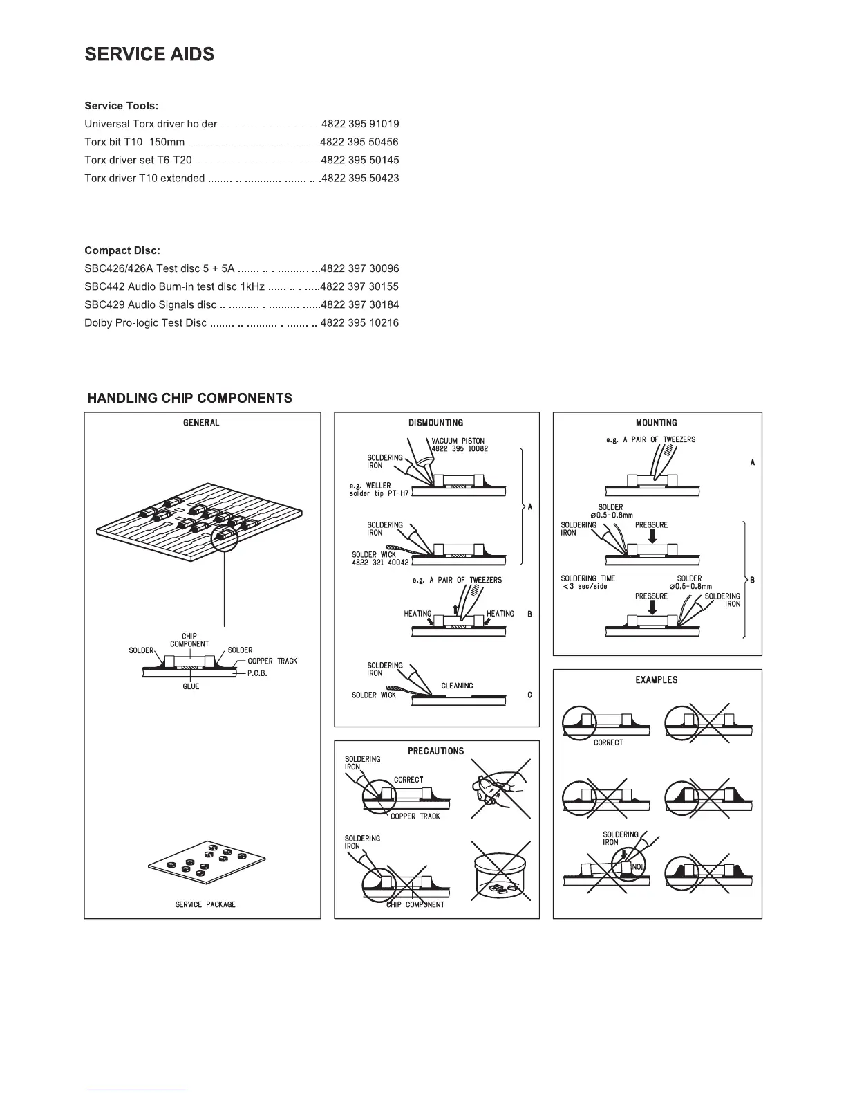 Philips HTS3565/98 - Service Aids and Handling; Service Tools and Compact Discs; Handling Chip Components