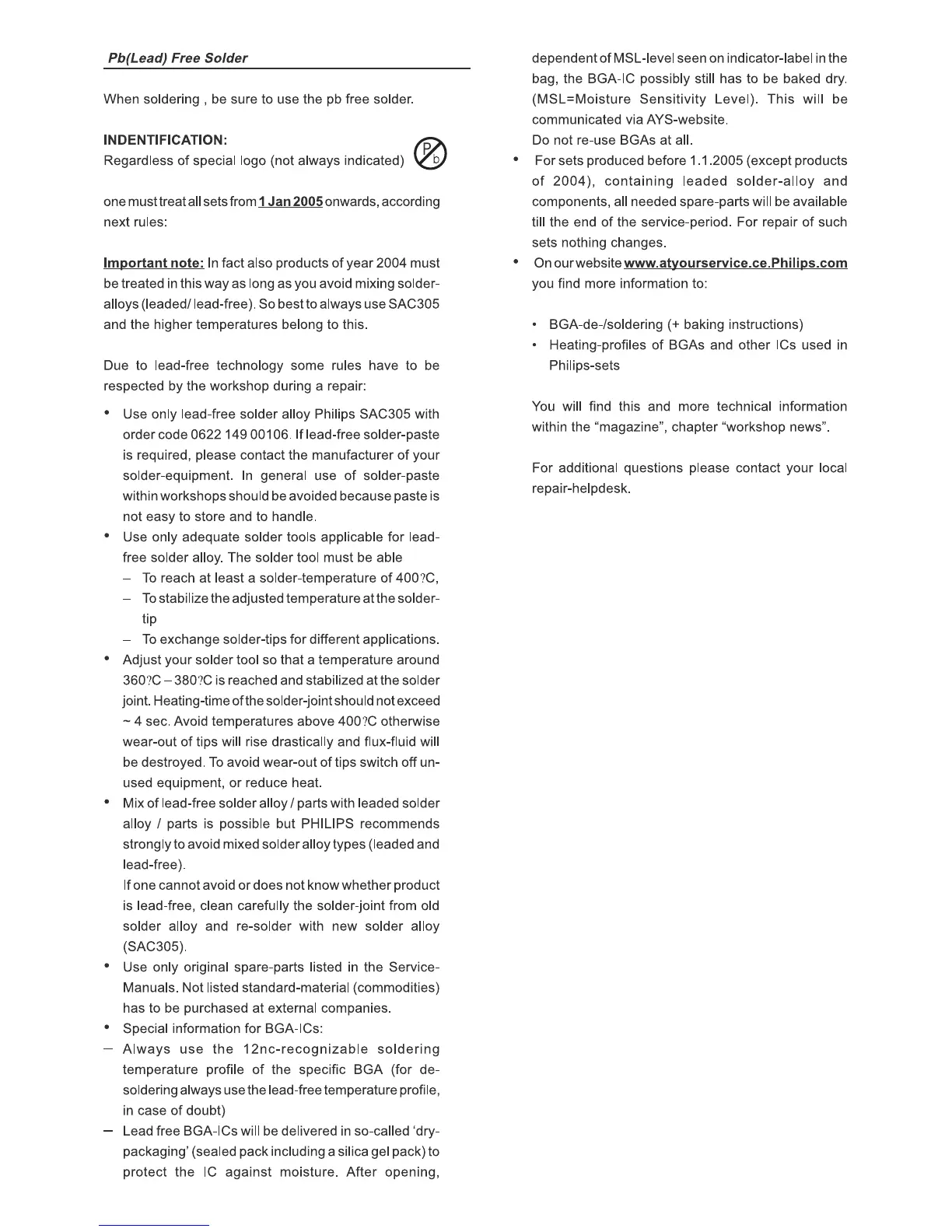 Philips HTS3571 - Lead-Free Solder Guidelines