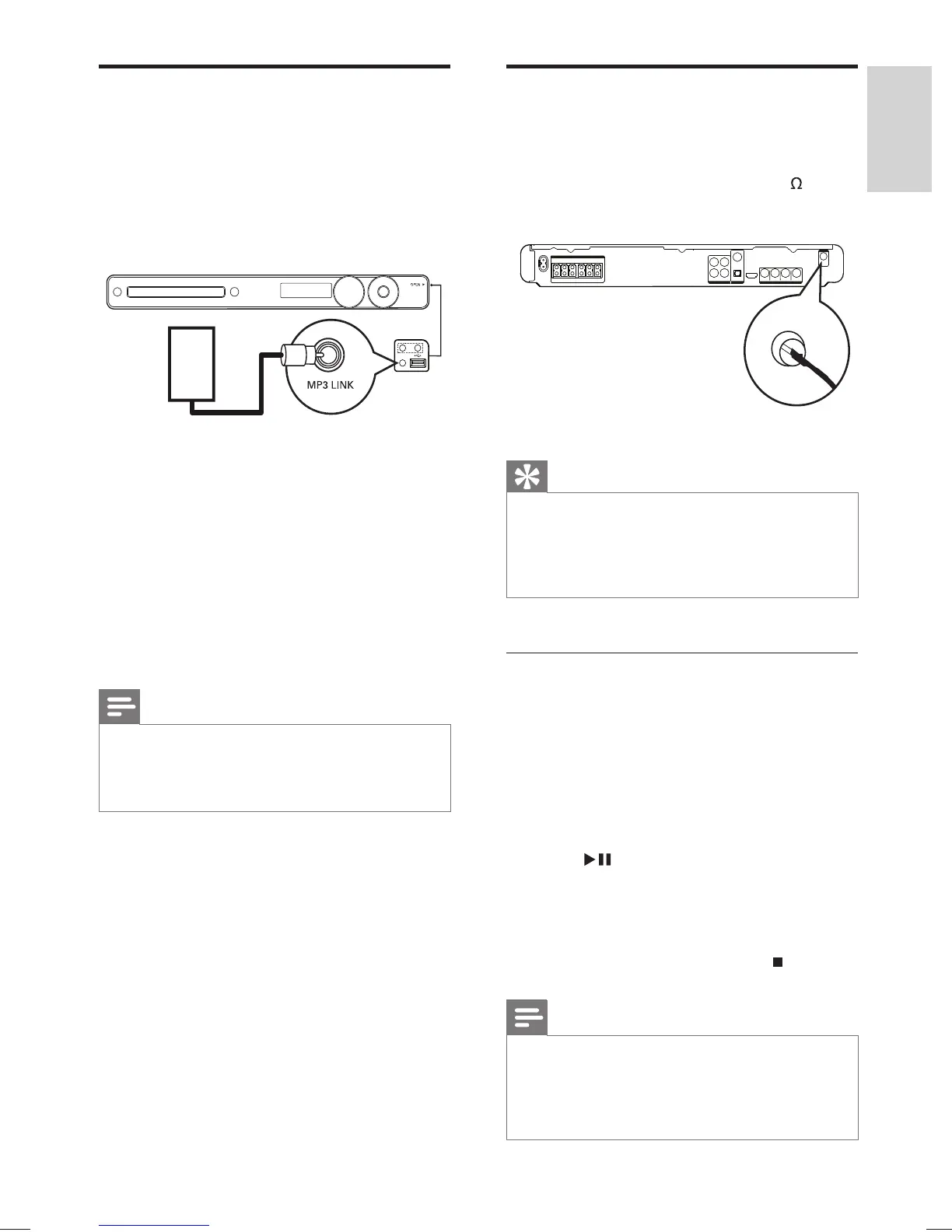 supplied) from the MP3 LINK jack on this