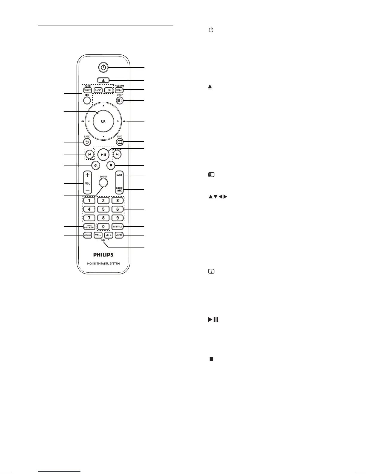 Starts, pauses or resumes disc play.•