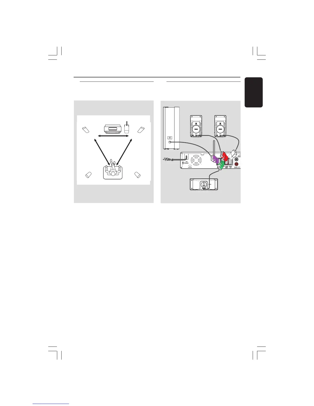 1 Place the front left and right speakers at