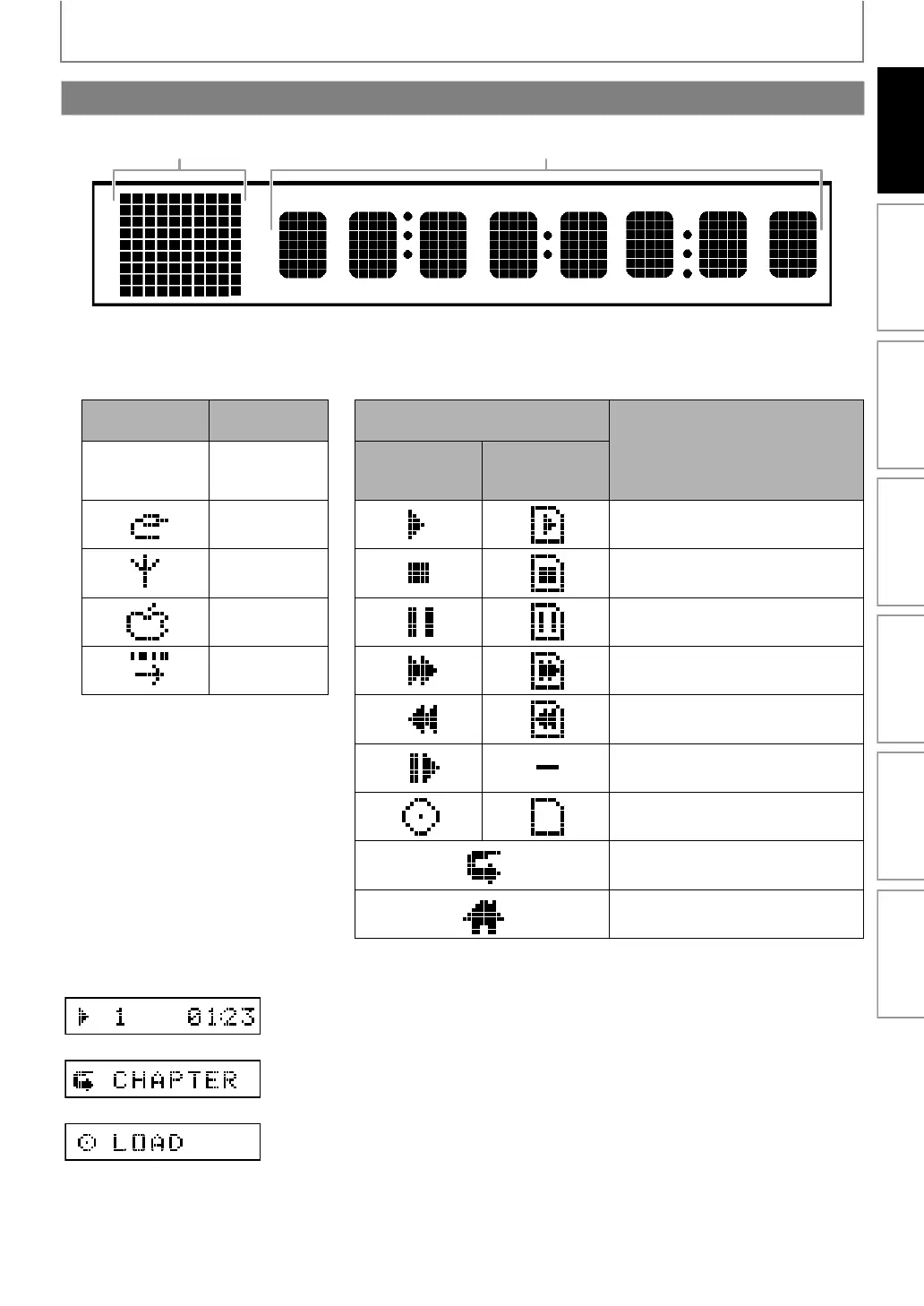 2. Displays various kinds of information such as title number, elapsed playing time, repeat type, menu type, etc.
