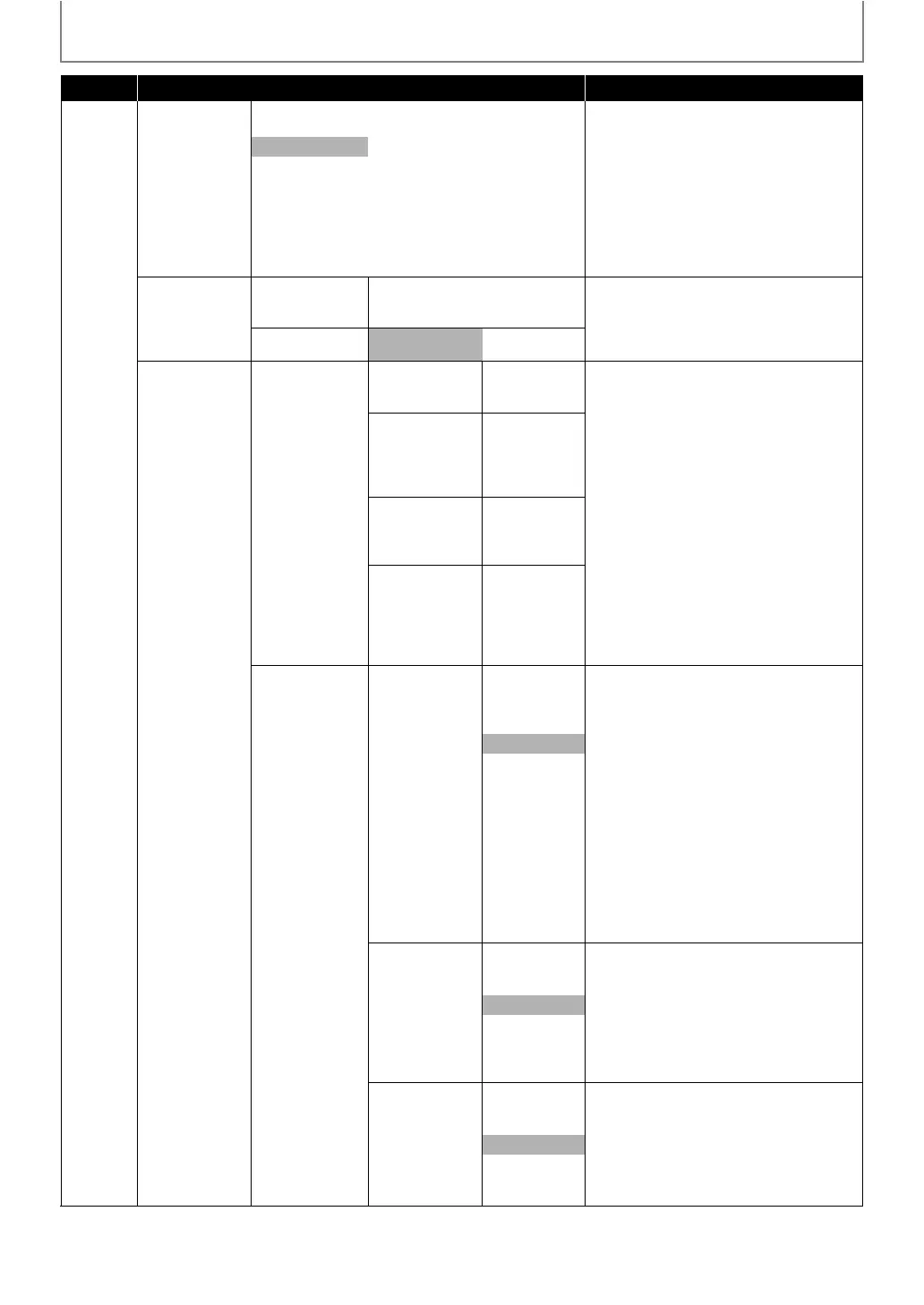 Category Menus/Options Description