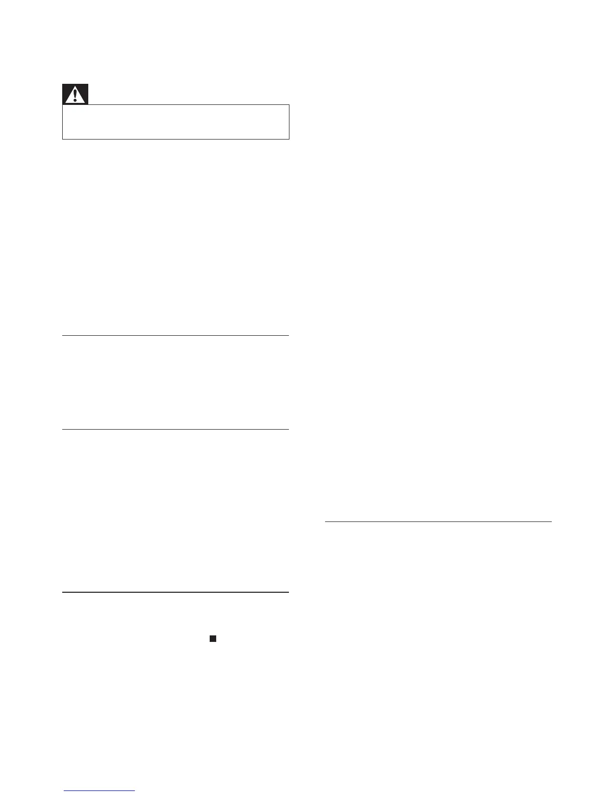 Risk of electric shock. Never remove the •