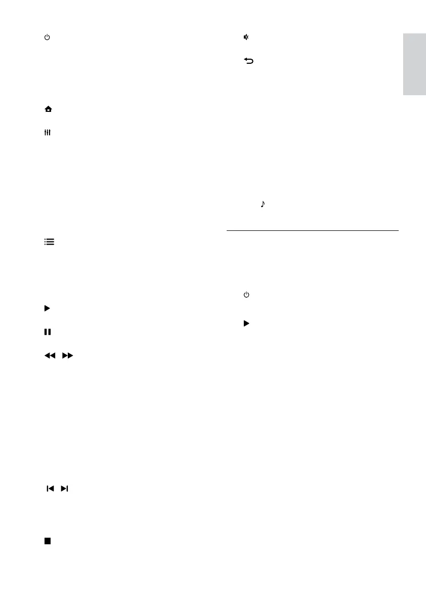 • Switch the home theater on or to