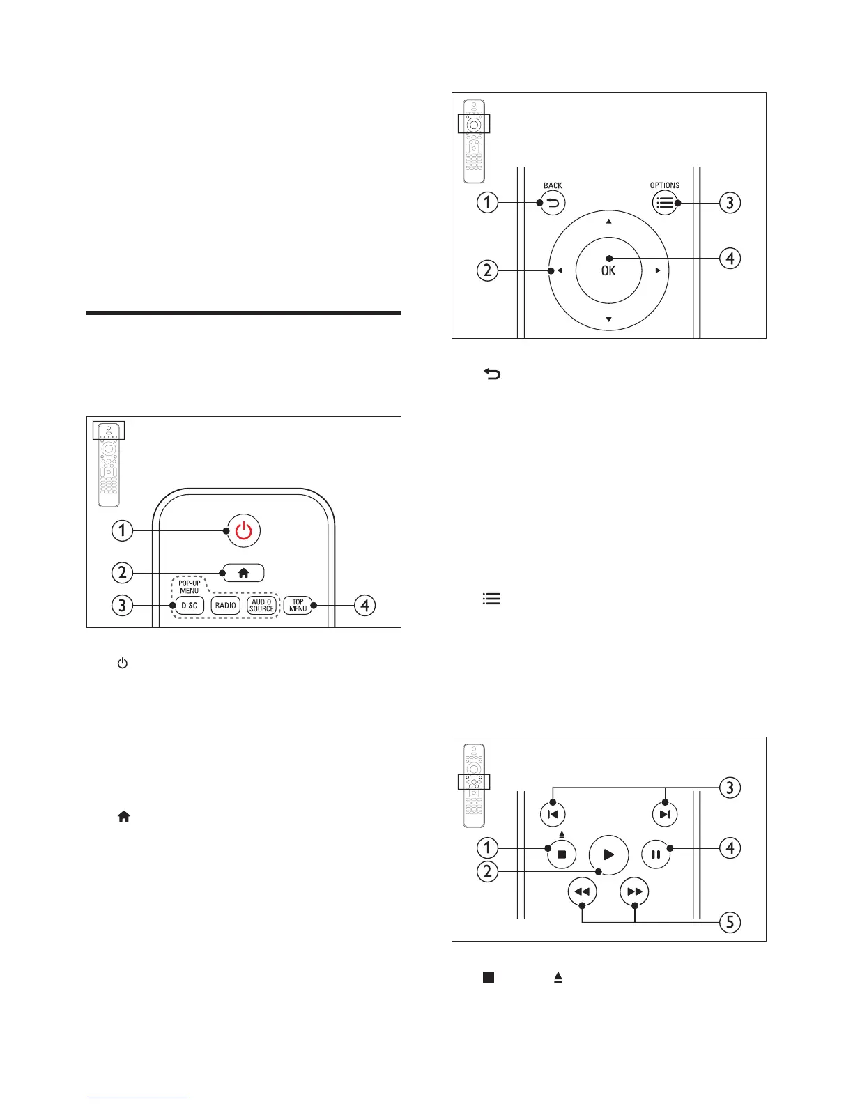 • Switch the home theater on or to